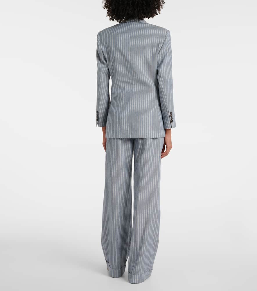 Material: 50% linen, 35% cotton, 15% hemp. Care instructions: dry clean. Made in Italy. Designer color name: Celeste/Bianco. Closure: double-breasted buttoned front. Pockets: flap pockets. Lining: 74% acetate, 26% silk. Shop the latest Brunello Cucinelli Blazers.