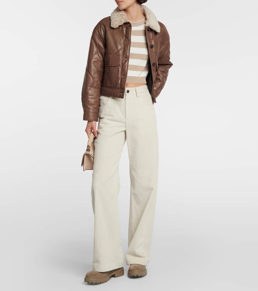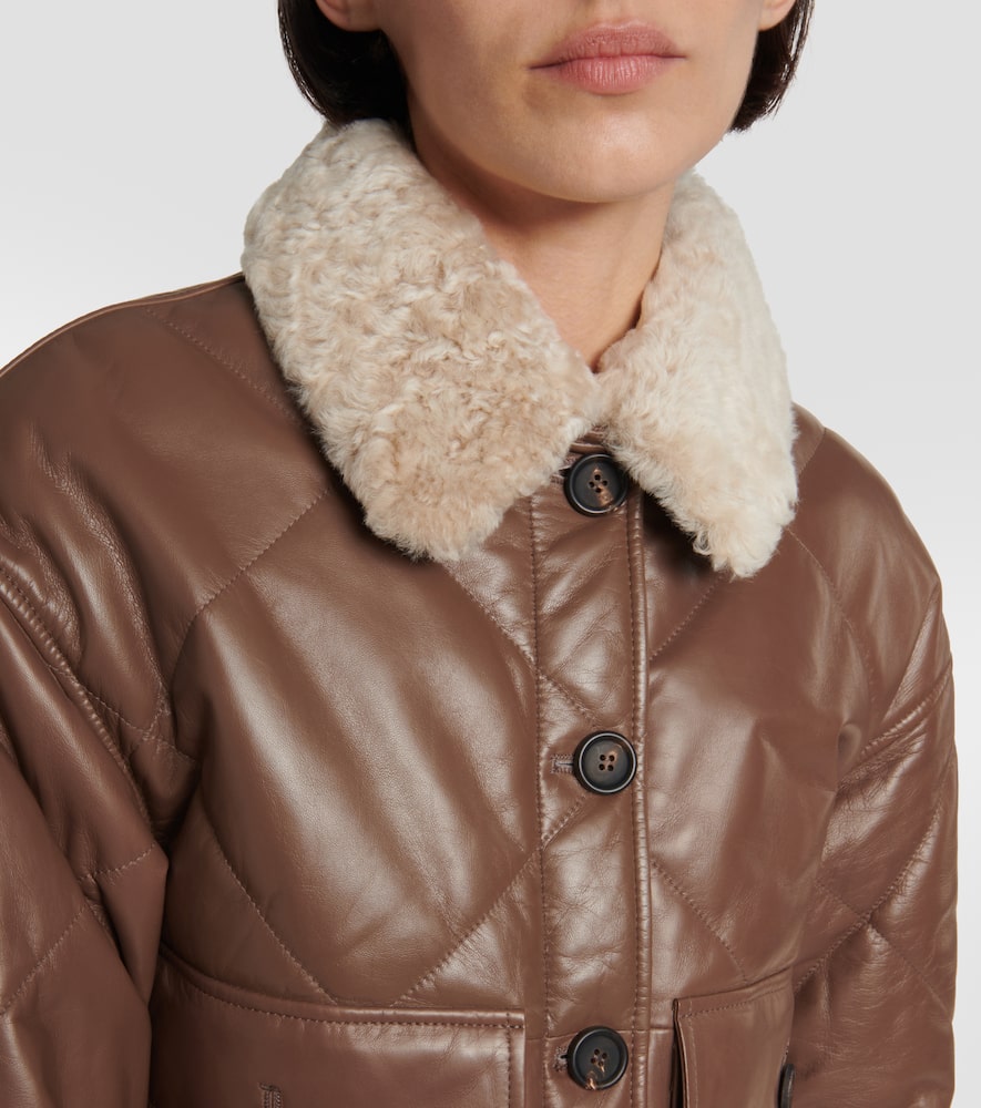 Made in Italy. Care instructions: specialist clean. Filling: 100% polyester. Designer color name: Hazel. Lining: 100% nylon, fully lined. Pockets: flap pockets. Closure: buttoned front. Material: 100% leather. Comes with garment bag. Shop the latest Brunello Cucinelli Leather Jackets.