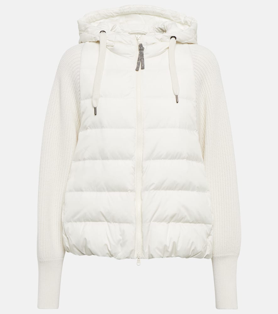 Pockets: snap-buttoned pockets. Material II: 60% wool, 30% cashmere, 10% silk. Made in Italy. Designer color name: White. Care instructions: specialist clean. Closure: two-way zipped front. Material: 100% polyester. Comes with garment bag. Drawstring hood. Lining: 100% polyamide, fully lined. Drawstring at the hem for adjustable fit. Filling: 100% polyamide. Details: 100% wool. Shop the latest Brunello Cucinelli Puffer & Down Jackets.