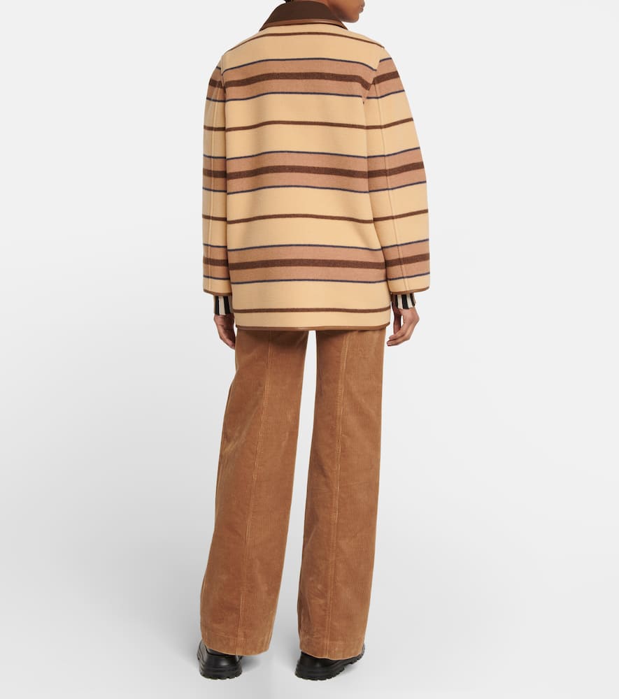 Care instructions: specialist clean. Trim: 100% lamb leather. Contains non-textile parts of animal origin. Designer color name: Soft Camel Ip Pat. Closure: snap-buttoned fastenings. Pockets: patch pockets, internal pockets. Made in Poland. Material: 100% wool. Shop the latest Burberry Wool Jackets.