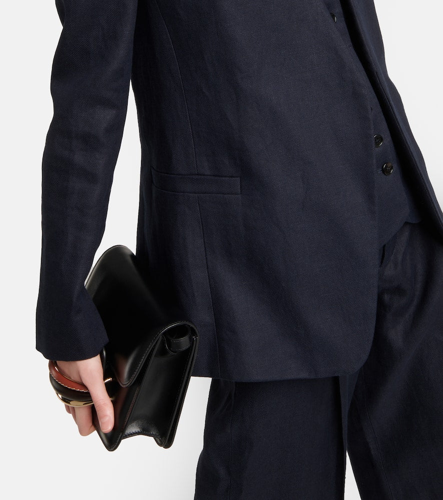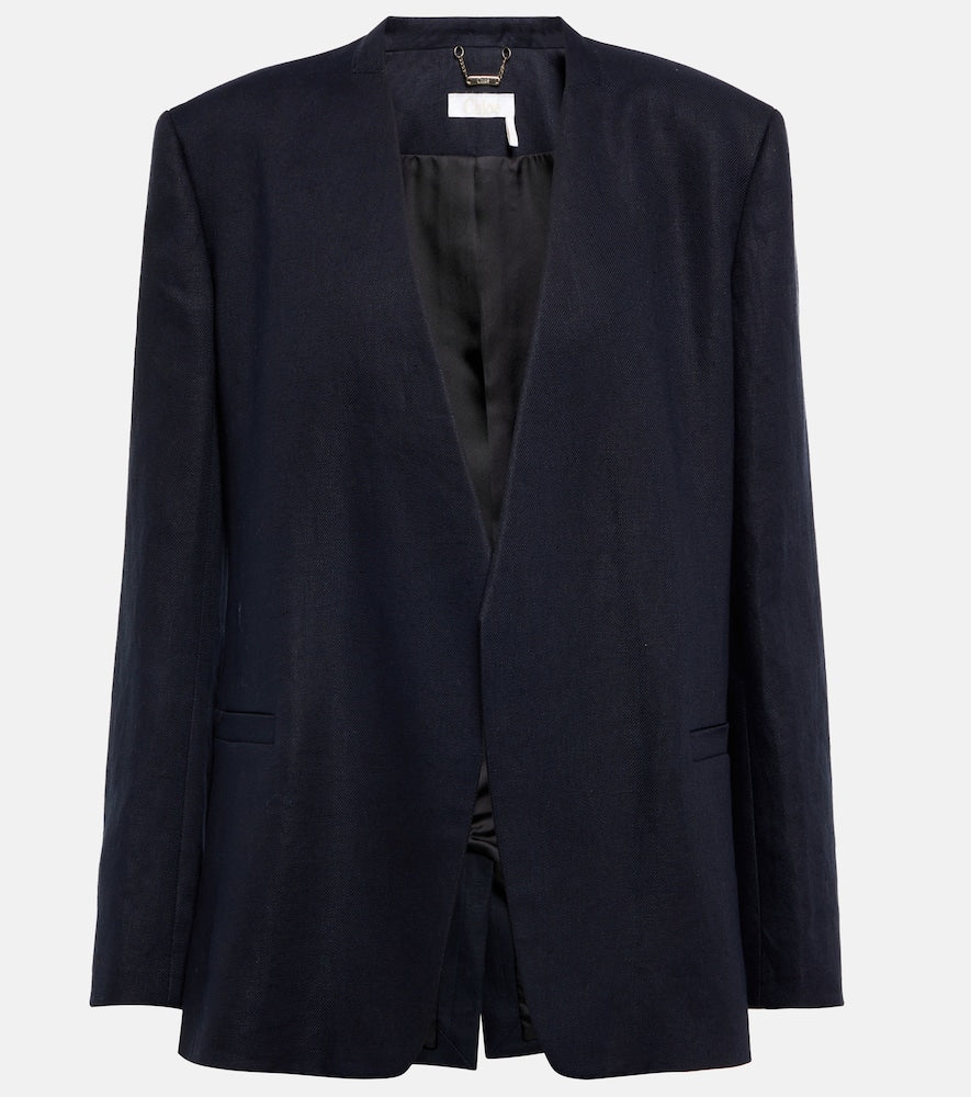 Material II: 10% wool, 90% viscose. Made in Slovakia. Material: 100% linen. Designer color name: Abyss Blue. Closure: open front. Lining: 100% silk, fully lined. Buttoned cuffs. Pockets: faux pockets. Care instructions: dry clean. Shop the latest Chloe Blazers.