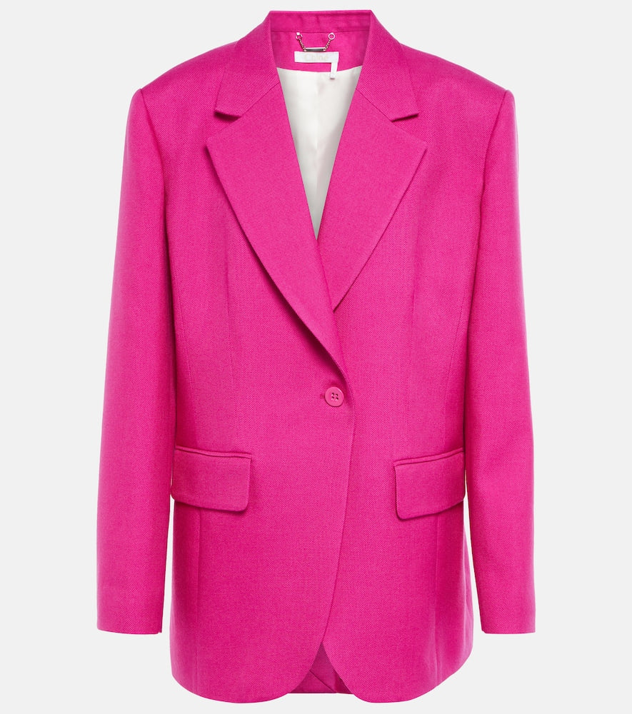Made in Italy. Contains non-textile parts of animal origin. Lining: 100% silk, fully lined. Designer color name: Raspberry Rose. Material: 70% wool, 17% silk, 13% cashmere. Pockets: flap pockets. Closure: buttoned front. Care instructions: dry clean. Shop the latest Chloe Blazers.