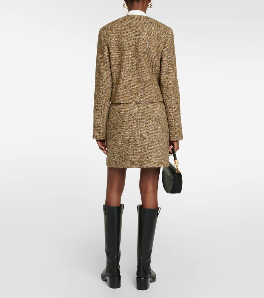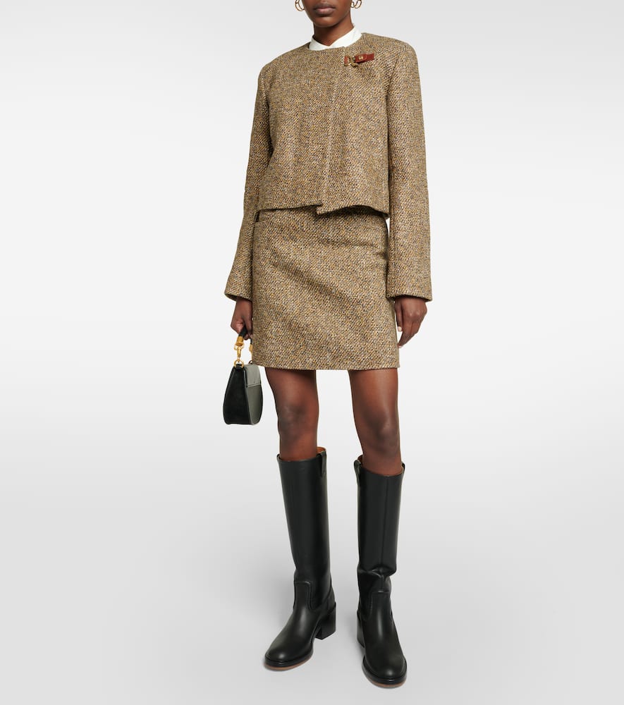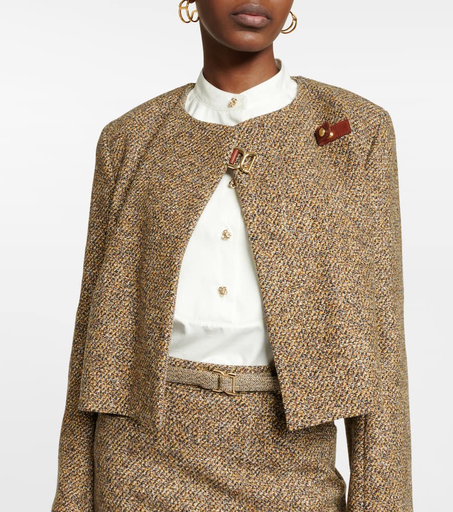 Material: 82% wool, 15% cotton, 3% polyamide. Care instructions: dry clean. Made in Slovakia. Designer color name: Multicolor Yellow 1. Closure: snap-buttoned front. Lining: 100% silk. Trim: 100% leather. Contains non-textile parts of animal origin. Shop the latest Chloe Wool Jackets.