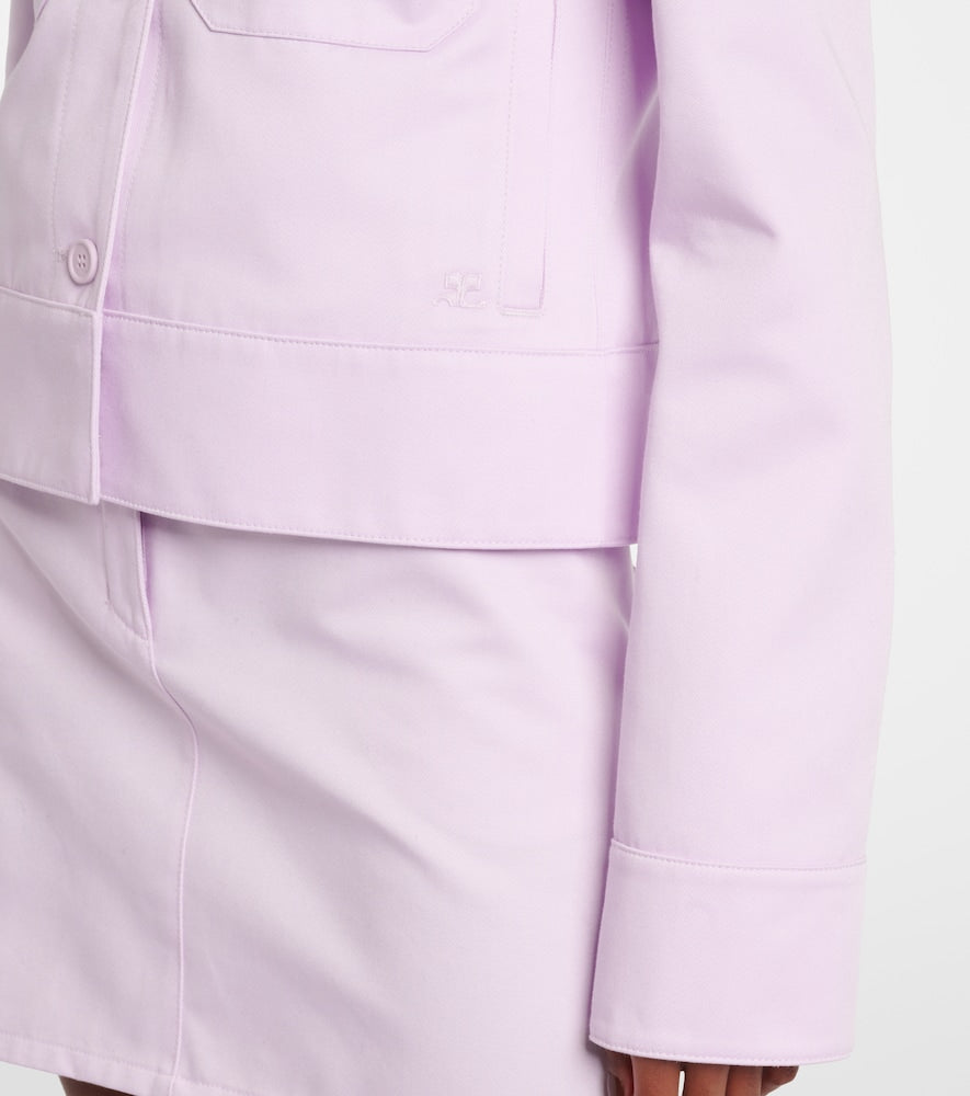 Material: 65% polyester, 35% cotton. Care instructions: dry clean. Made in Serbia. Designer color name: Salt Pink. Lining: 100% viscose. Pockets: flap chest pockets, slant pockets. Closure: buttoned front. Shop the latest Courreges Leather Jackets.