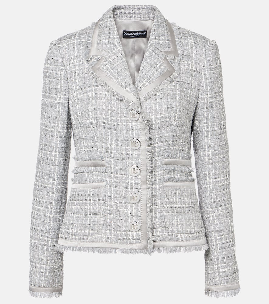 Material: 25% viscose, 18% cotton, 18% polyamide, 16% polyester, 12% acrylic, 6% linen, 5% metallic fibres. Care instructions: dry clean. Made in Italy. Designer color name: Quadri-Check-Tartan. Closure: buttoned front. Pockets: slit pockets. Lining: 92% silk, 8% elastane. Shop the latest Dolce&Gabbana Tweed Jackets.