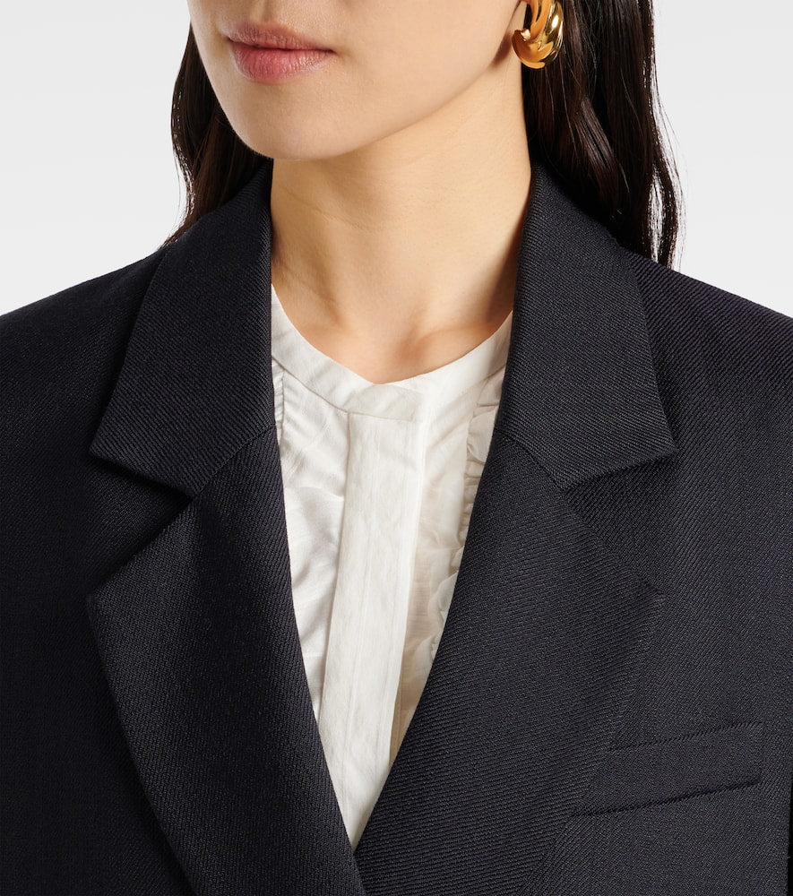 Material: 56% viscose, 44% wool. Care instructions: dry clean. Made in Ukraine. Designer color name: Dark Navy. Pockets: flap pockets, internal pocket. Closure: buttoned front. Shop the latest Dorothee Schumacher Blazers.