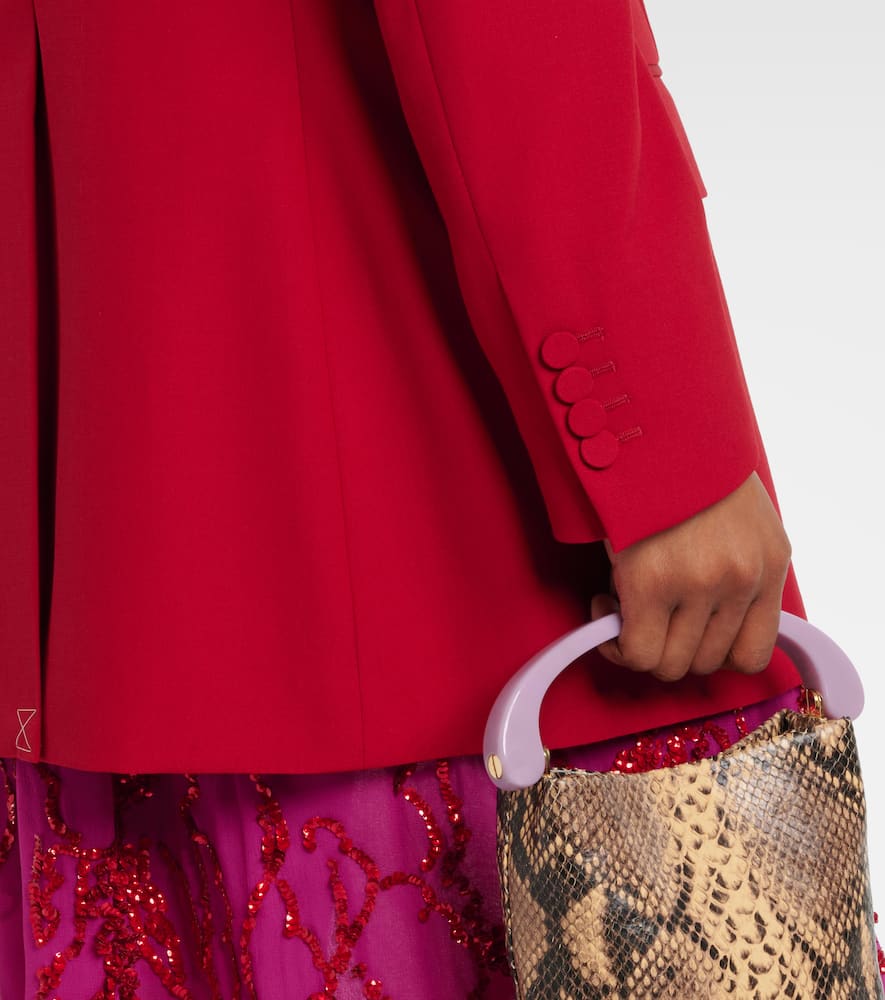 Material: 100% wool. Care instructions: dry clean. Made in Morocco. Designer color name: Red. Closure: double-breasted (four buttons). Pockets: flap pockets. Lining: 100% viscose. Shop the latest Dries Van Noten Blazers.