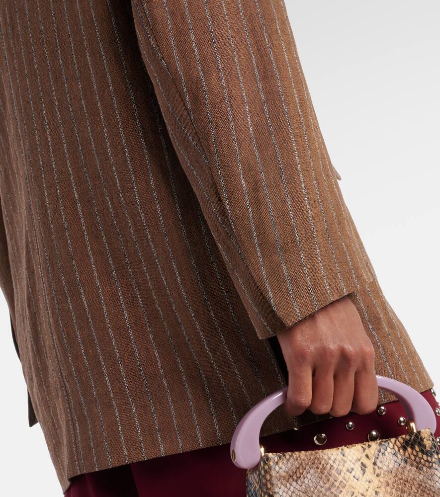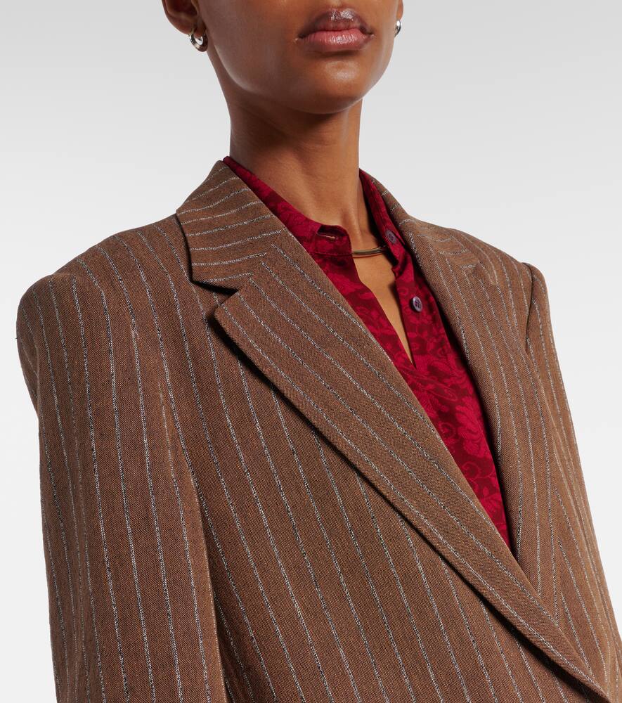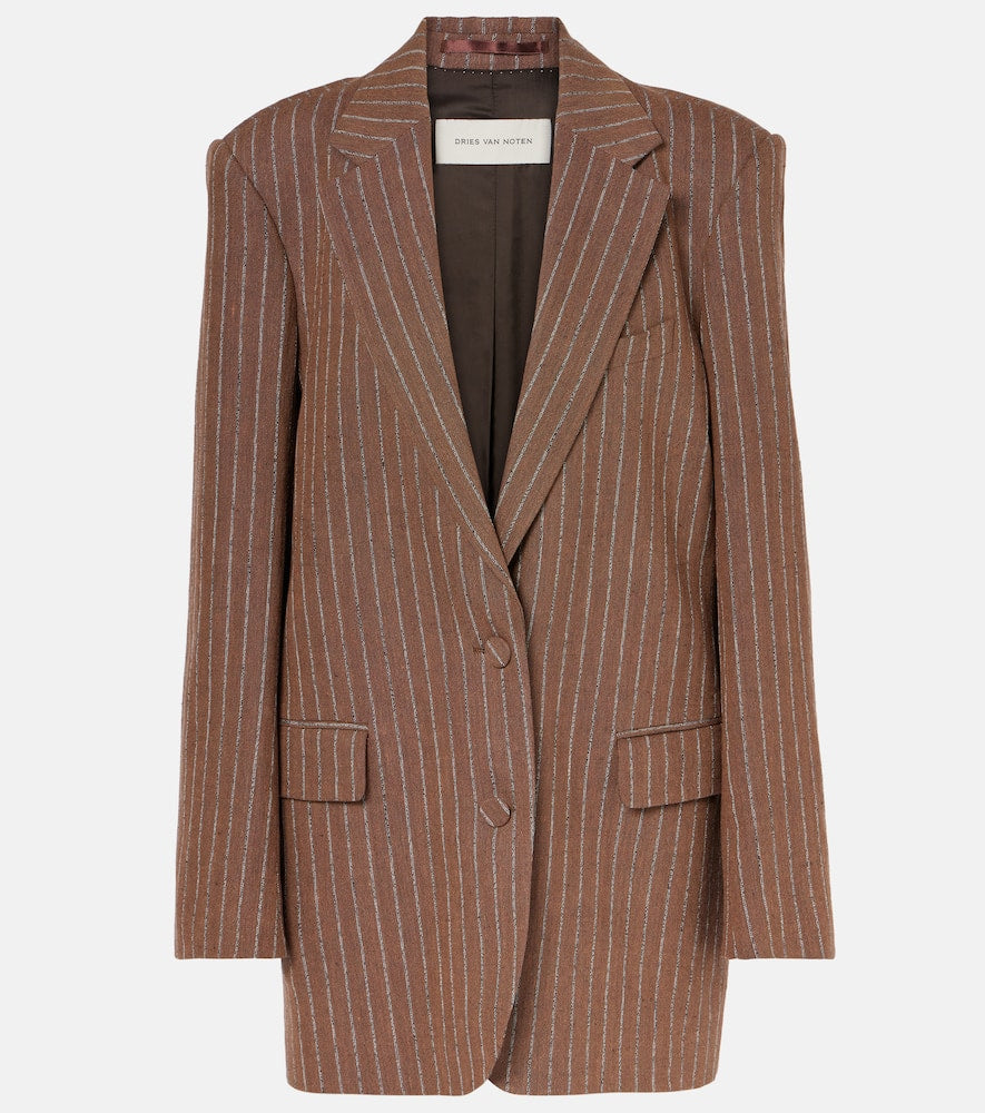 Material: 95% linen, 2% polyester, 2% cotton, 1% polyamide. Care instructions: dry clean. Made in Morocco. Designer color name: Camel. Lining: 100% viscose. Closure: double-breasted buttoned front. Pockets: flap pockets, angled chest pocket. Shop the latest Dries Van Noten Blazers.
