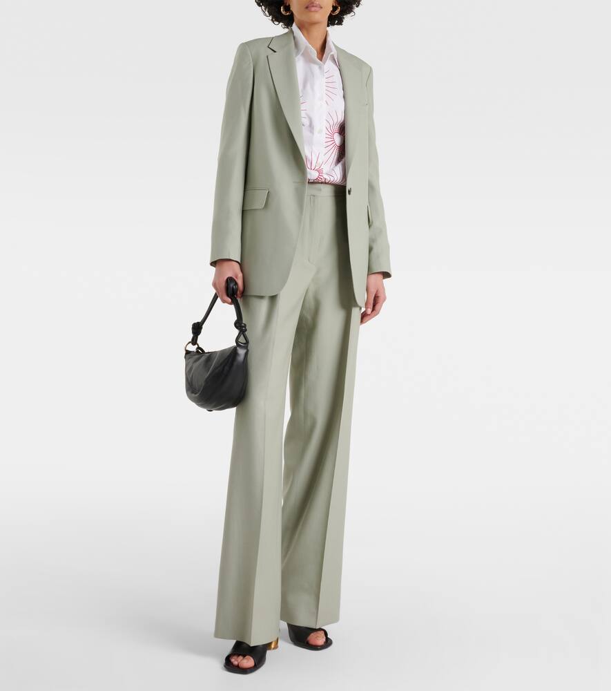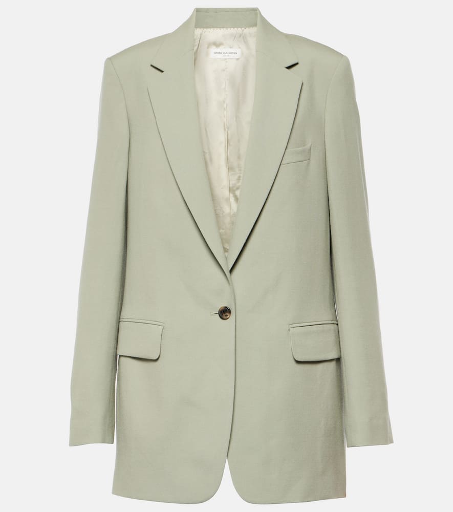 Material: 100% wool. Care instructions: dry clean. Made in Morocco. Designer color name: Cement. Lining: 100% viscose. Closure: single-breasted (one button). Pockets: flap pockets, breast pocket. Notched lapel. Shop the latest Dries Van Noten Blazers.
