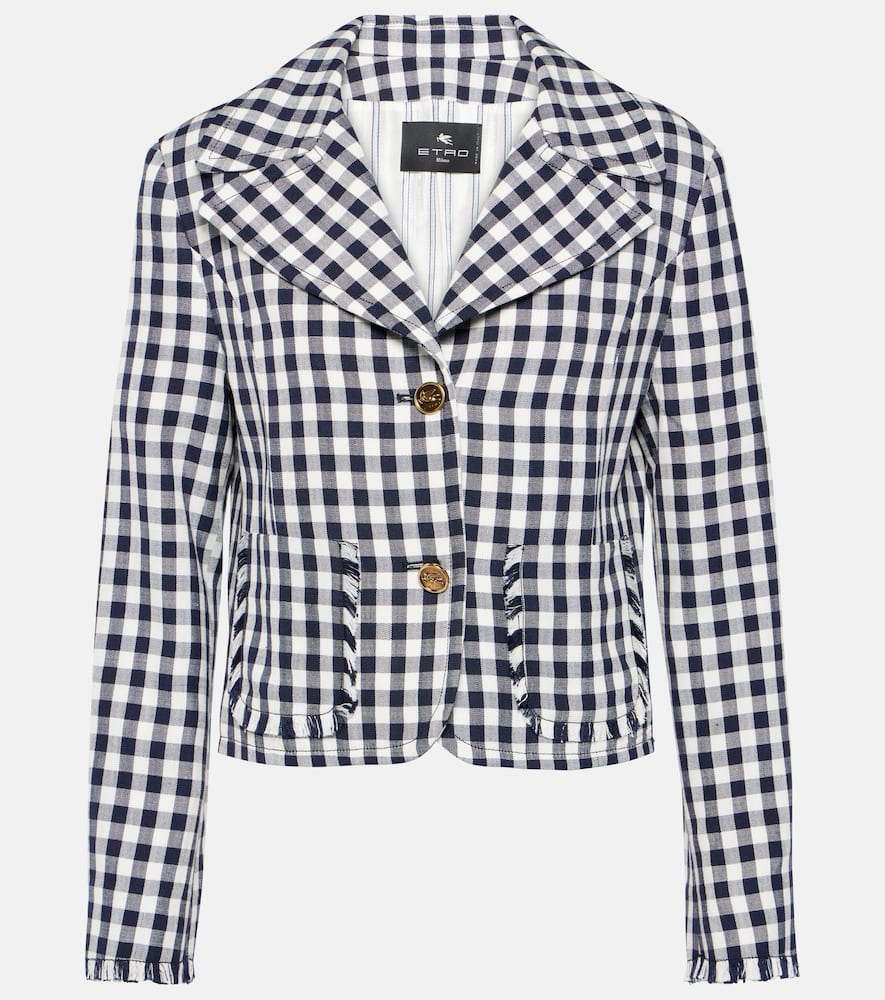 Material: 100% viscose. Care instructions: dry clean. Made in Italy. Designer color name: Black/White. Lining: 52% viscose, 48% acetate. Closure: buttoned front. Pockets: patch pockets. Notched lapel. Shop the latest Etro Tweed Jackets.
