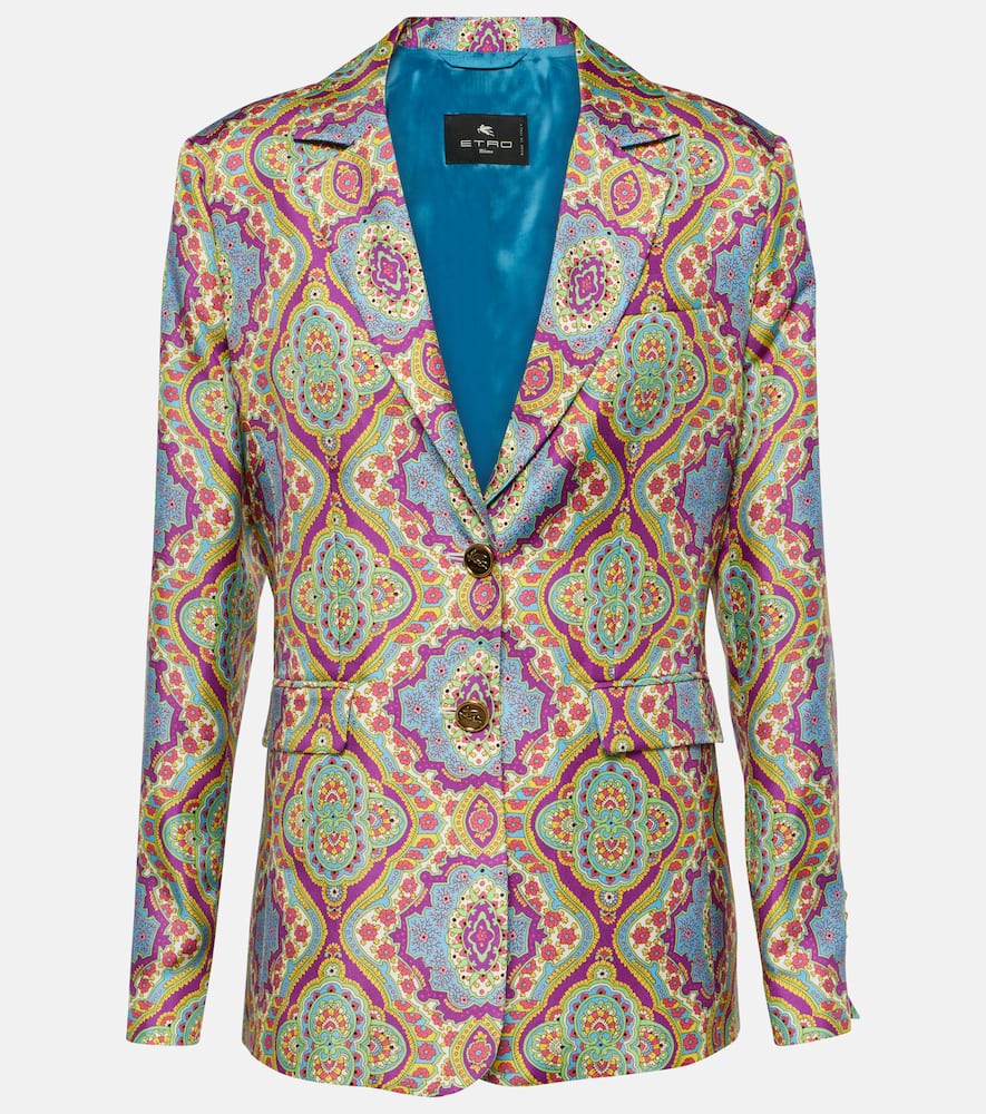 Material: 100% silk. Care instructions: dry clean. Made in Italy. Designer color name: Print On Pale Blue Base. Lining: 100% viscose. Closure: single-breasted (two buttons). Pockets: flap pockets, breast pocket. Notched lapel. Shop the latest Etro Blazers.