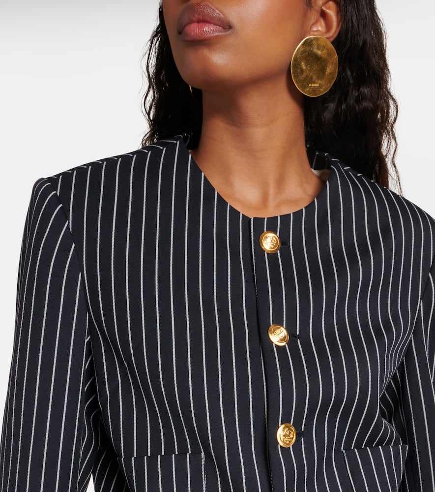 Material: 55% polyester, 45% wool. Care instructions: dry clean. Made in Turkey. Designer color name: Dark Navy Multi. Closure: buttoned front. Pockets: patch pockets. Shop the latest Frame Wool Jackets.