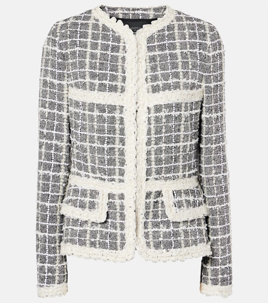 Material: 57% wool, 32% polyamide, 8% polyester, 3% alpaca wool. Care instructions: do not wash. Made in Italy. Designer color name: Grey/ White . Closure: snap-buttoned front. Lining: 100% silk. Shop the latest Giambattista Valli Tweed Jackets.