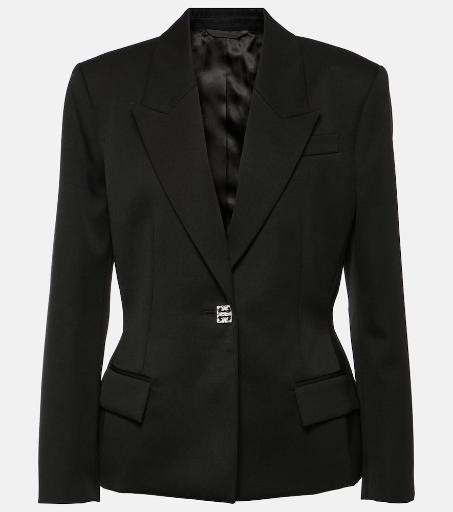 Material: 100% wool. Care instructions: dry clean. Made in Italy. Designer color name: Black. Closure: buttoned front. Pockets: breast pocket, welt pocket, flap pockets. Shop the latest Givenchy Blazers.