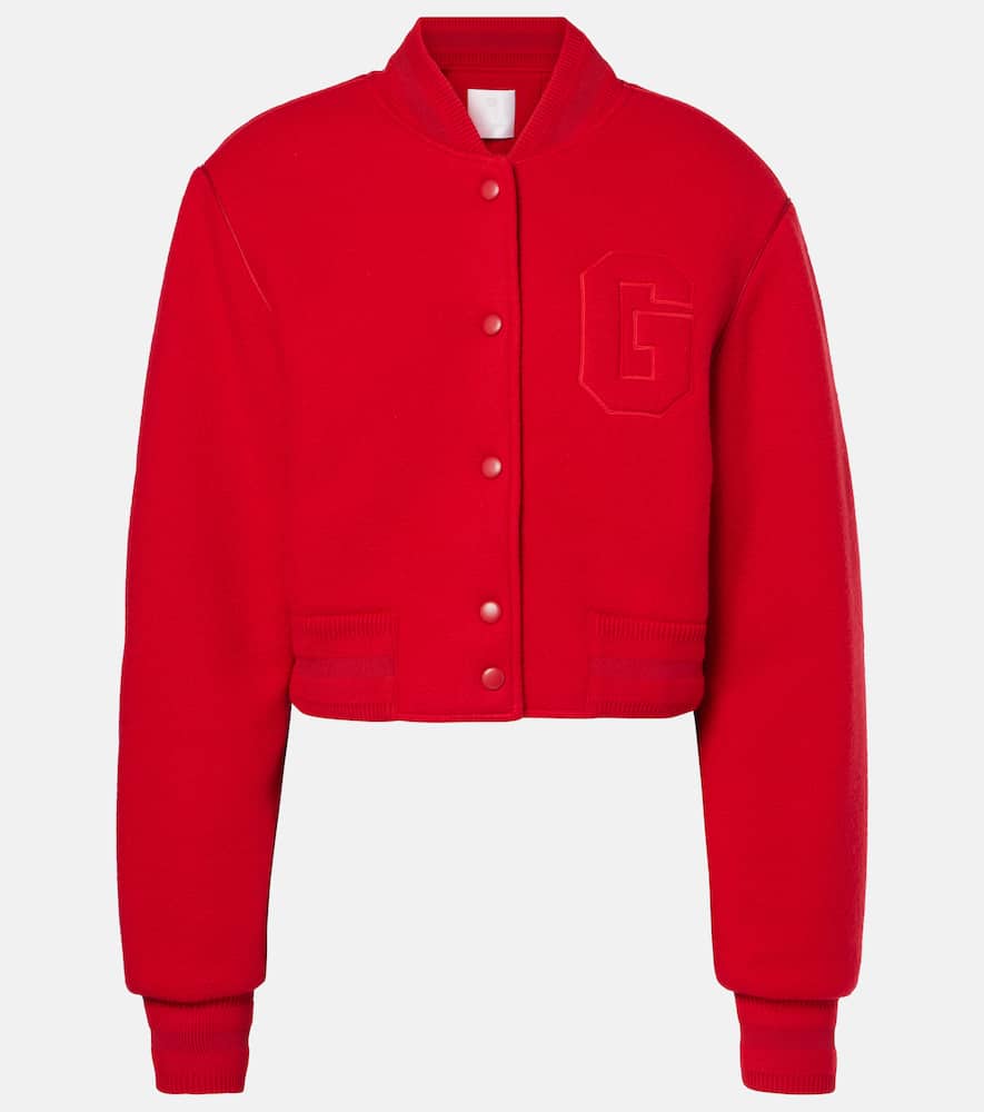 Material: 100% wool. Care instructions: dry clean. Made in China. Designer color name: Red. Lining: 100% wool. Filling: 100% polyester. Material II: 72% wool, 23% polyester, 3% polyamide, 2% elastane. Closure: snap-buttoned front. Elasticated cuffs. Shop the latest Givenchy Bomber & Track Jackets.