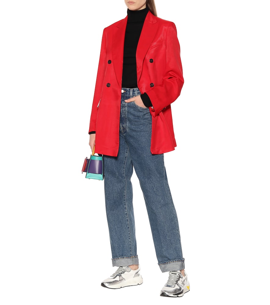 Made in Italy. Lining: 64% viscose, fully lined, 36% cupro. Material: 100% viscose. Designer color name: Red. Sleeve lining: 36% cupro, 64% viscose. Pockets: breast pocket, flap pockets. Buttoned cuffs. Closure: buttoned front. Care instructions: dry clean. Shop the latest Golden Goose Blazers.