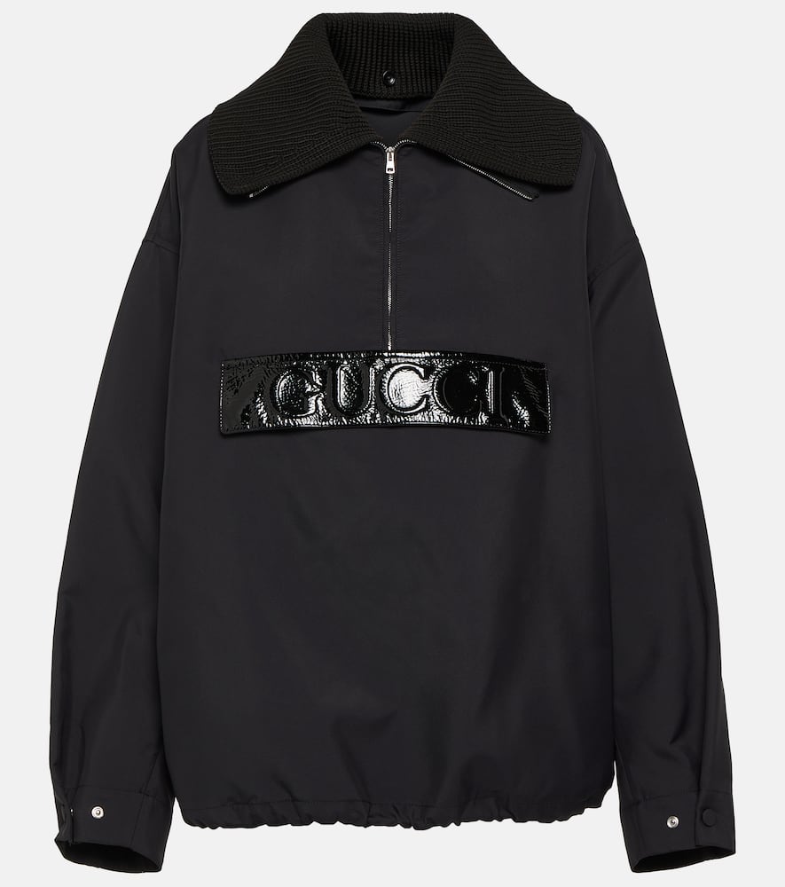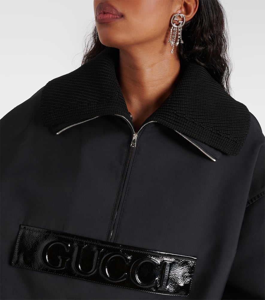 Material: 99% polyamide, 1% polyester. Care instructions: dry clean. Made in Italy. Designer color name: Black. Material II: 100% polypropylene. Pocket lining: 100% polyamide. Details: 100% polyamide. Material III: 100% metal. Contains non-textile parts of animal origin. Closure: partially zipped front. Hem: drawstring at the hem for an adjustable fit. Pockets: zipped pockets. Hood. Shop the latest Gucci Bomber & Track Jackets.