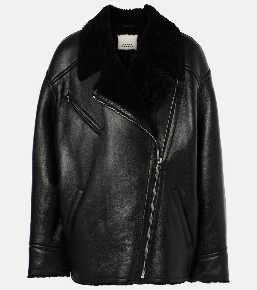 Material: 100% lamb leather. Care instructions: do not wash. Made in India. Designer color name: Faded Black. Trim: 100% shearling. Closure: zipped front. Pockets: welt pockets. Shop the latest Isabel Marant Shearling Jackets.