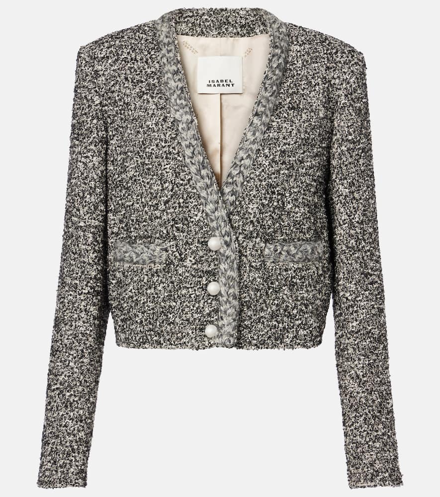 Material: 29% acrylic, 22% polyester, 22% wool, 20% cotton, 7% other fibres. Care instructions: dry clean. Made in Poland. Designer color name: Black/Ecru. Lining: 100% viscose. Pocket lining: 100% cotton. Closure: partially buttoned front. Shop the latest Isabel Marant Blazers.