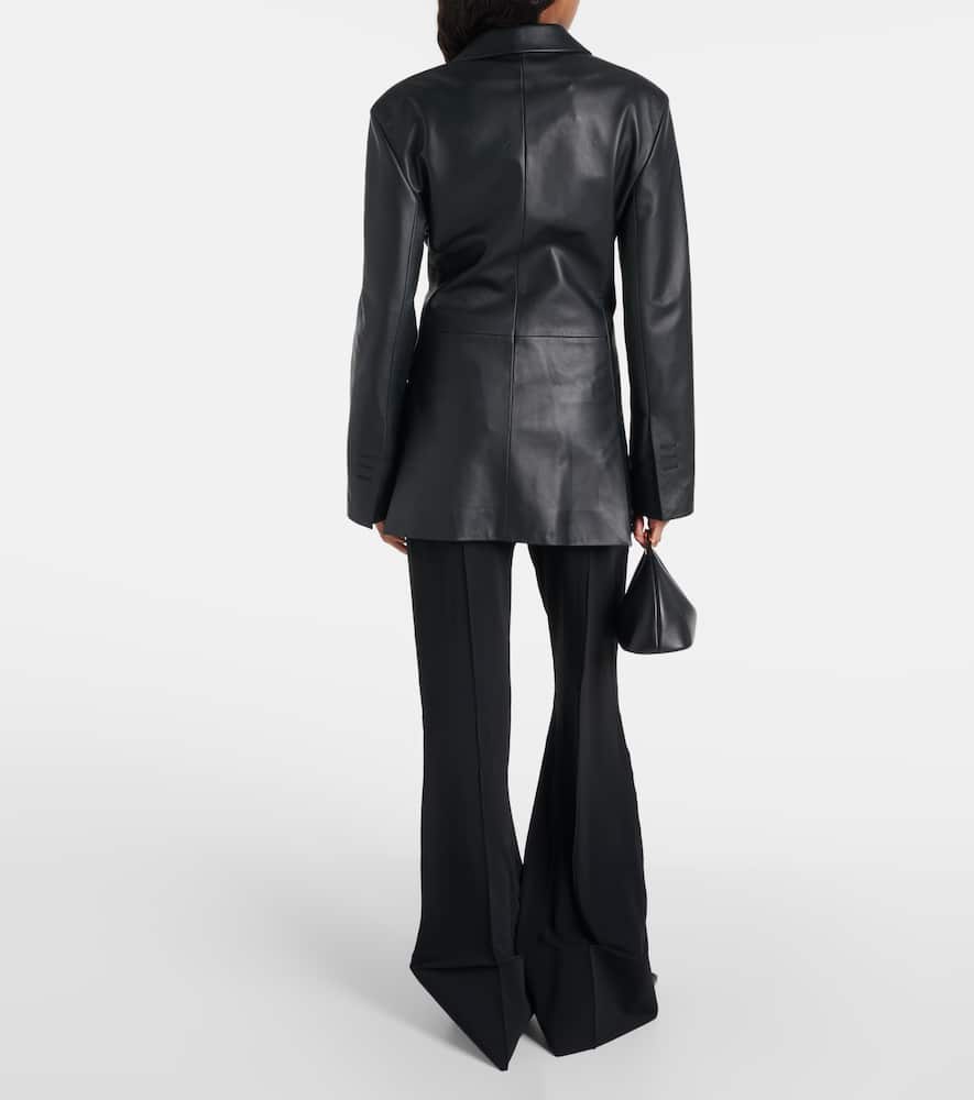 Material: 100% lamb leather. Care instructions: specialist clean. Made in Tunisia. Designer color name: Black. Lining: 100% viscose. Closure: double-breasted buttoned front. Pockets: flap pockets, welt pocket, breast pocket. Shop the latest Jacquemus Leather Jackets.