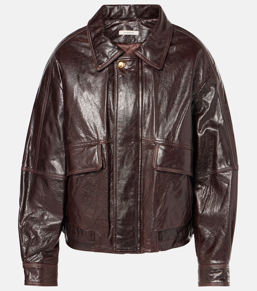 Material: 100% leather. Care instructions: dry clean. Made in China. Designer color name: Brown. Closure: concealed zipper, button fastening. Pockets: side slit pockets, flap pockets. Buttoned cuffs. Lining: 55% polyester, 45% viscose. Fully lined. Shop the latest Jacques Wei Leather Jackets.