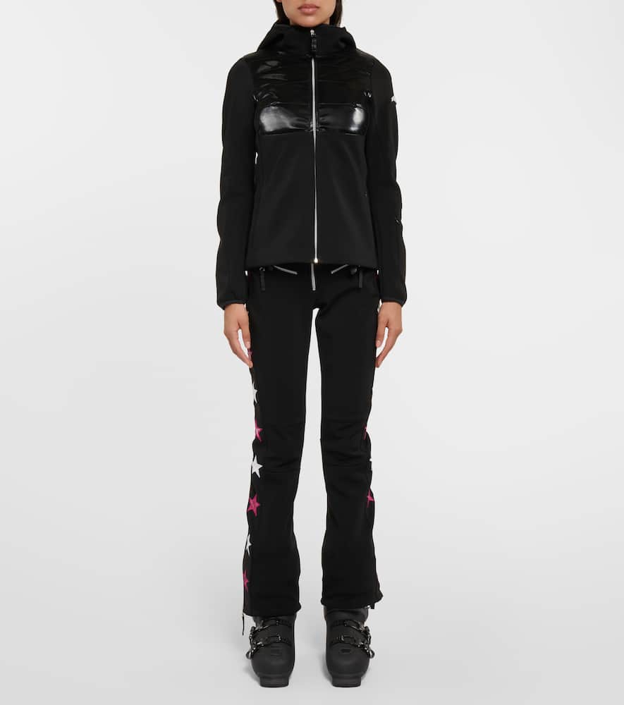 Material: 45% polyamide, 42% polyester, 13% elastane. Care instructions: machine wash at 30 degrees. Made in Romania. Designer color name: Black. Lining: 78% polyester, 22% elastane. Closure: zipped front. Pockets: side slit pockets, zipped pockets. Hood. Shop the latest Jet Set Ski Jackets.