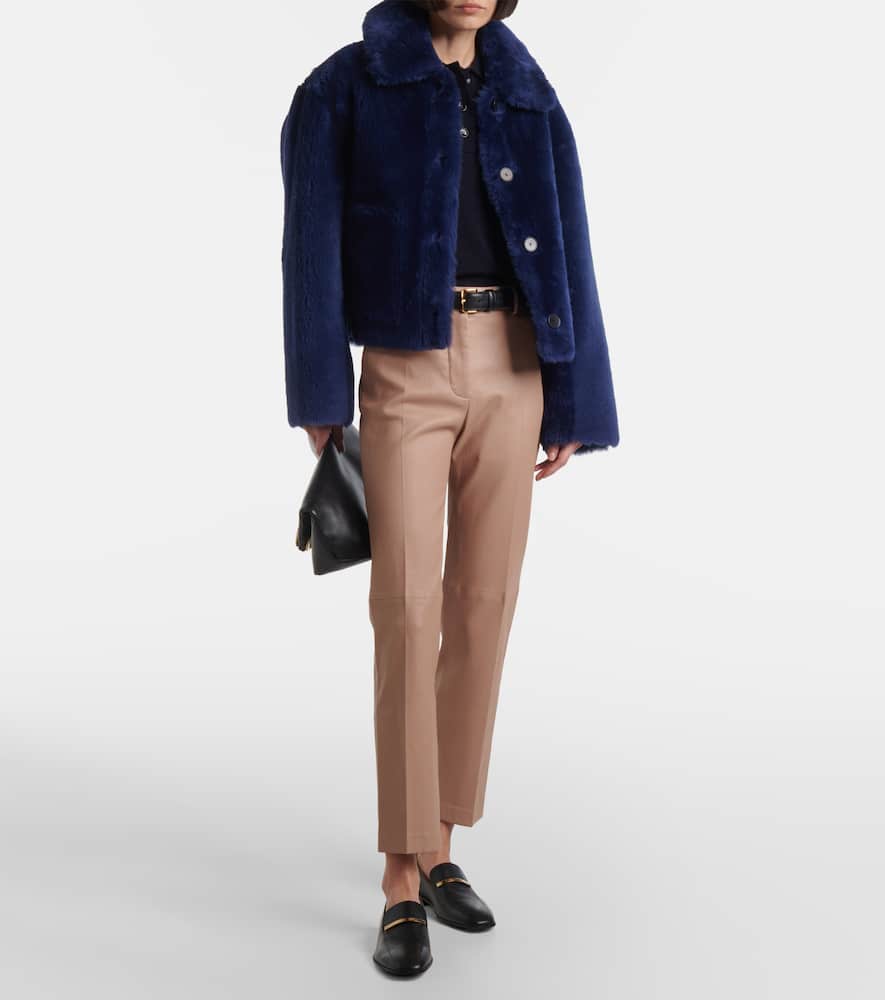 Material: 100% shearling. Care instructions: specialist clean. Made in Turkey. Designer color name: Harbour. Material II: 100% leather. Closure: buttoned front. Pockets: slant pockets. Shop the latest Joseph Shearling Jackets.