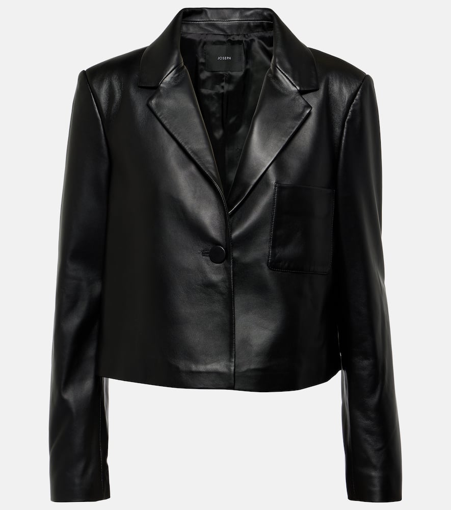 Material: 100% lamb leather. Care instructions: do not wash. Made in Turkey. Designer color name: Black. Lining: 100% viscose. Closure: buttoned front. Pockets: breast pocket. Shop the latest Joseph Blazers.