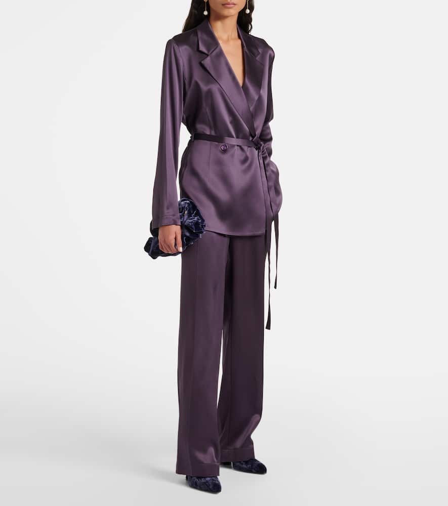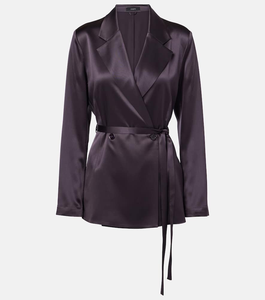 Material: 100% silk. Care instructions: dry clean. Made in China. Designer color name: Aurora. Closure: double-breasted. Detachable belt. Shop the latest Joseph Blazers.