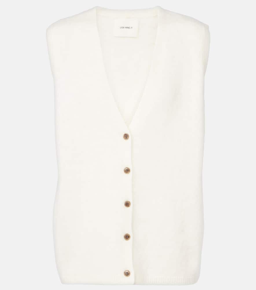 Material: 100% cashmere. Care instructions: dry clean. Made in China. Designer color name: Cream Brushed. Closure: buttoned front. Shop the latest Lisa Yang Vests & Gilets.