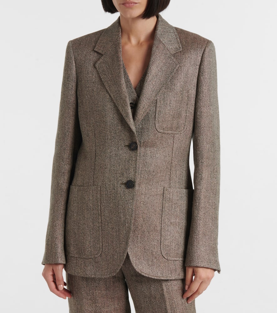 Material: 100% European Flax™. Care instructions: dry clean. Made in Italy. Designer color name: CHERRY WINE/CLEAR OY. Closure: single-breasted (two buttons). Pockets: patch pockets. Lining: 100% silk. Buttoned sleeves. Shoulder pads. Shop the latest Loro Piana Blazers.