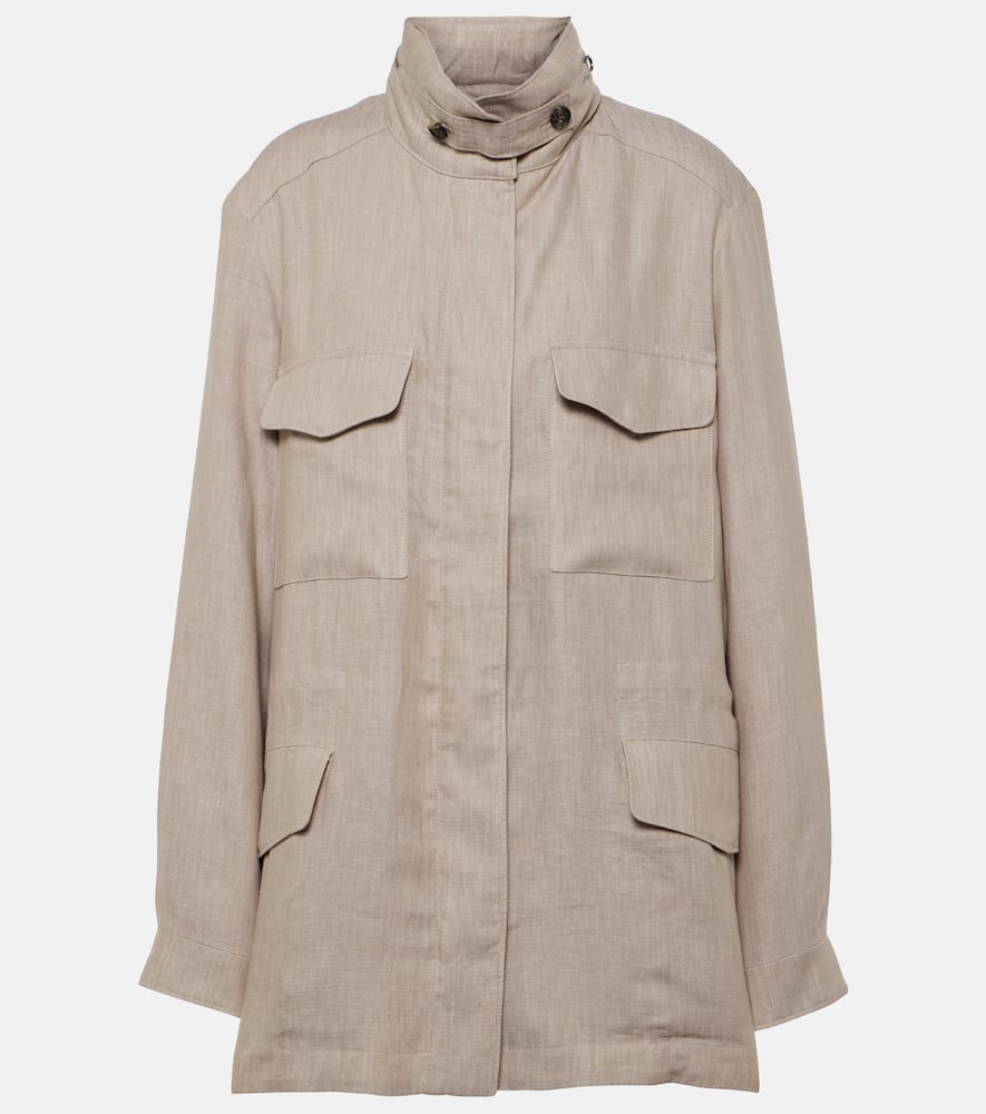 Material: 100% linen. Care instructions: dry clean. Made in Italy. Designer color name: Grain Beige. Details: 100% polyurethane. Closure: zipper, snap-button fastenings. Pockets: flap pockets, snap-buttoned pockets. Shop the latest Loro Piana Overshirts & Utility Jackets.