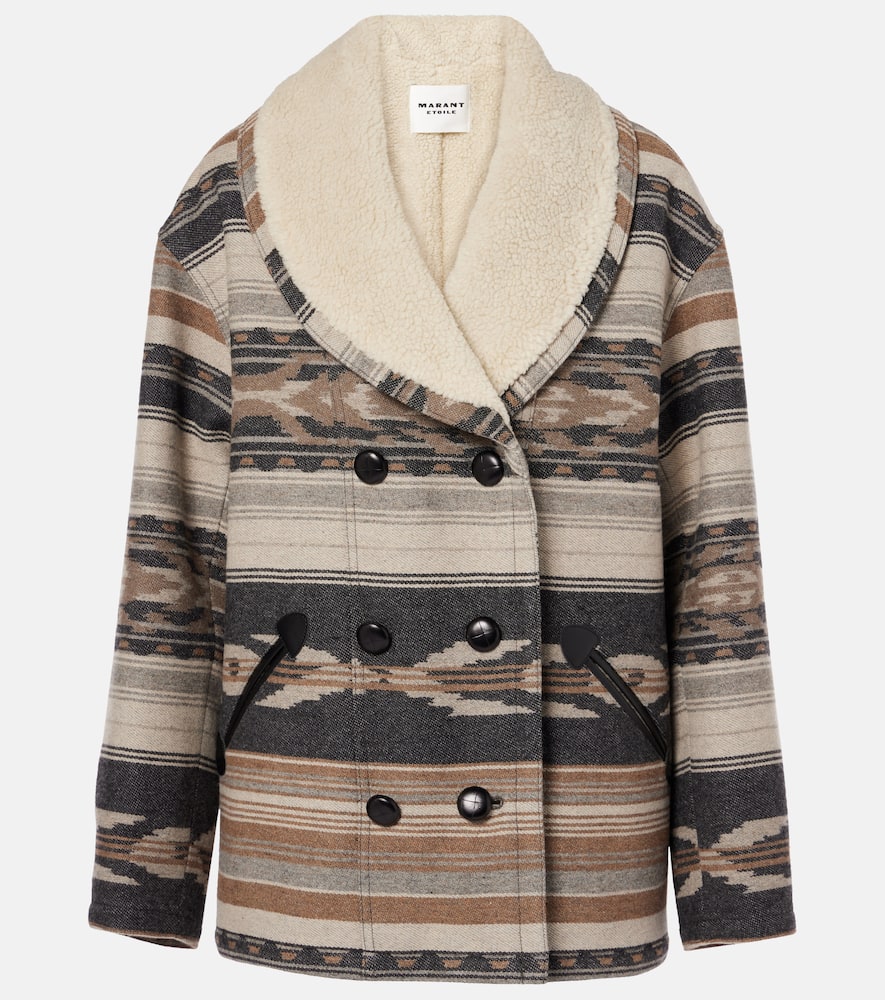 Marant Etoile Dorcas faux shearling-trimmed peacoat