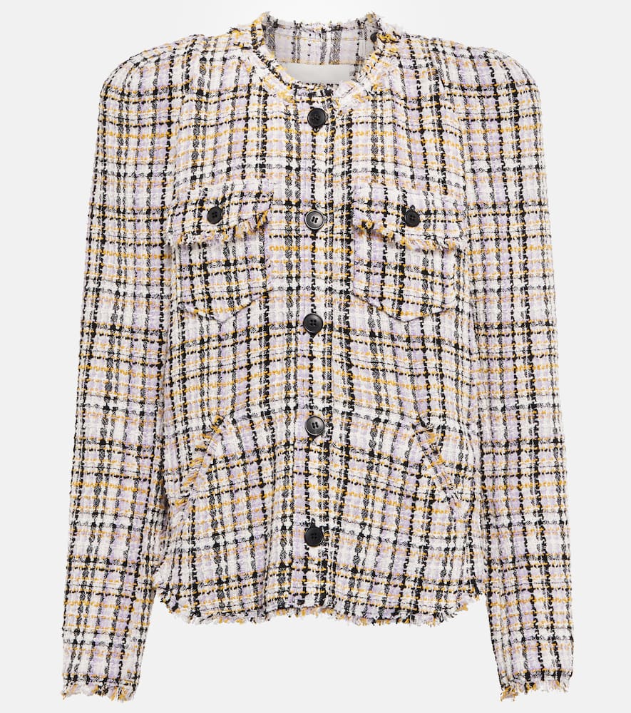 Lining: 100% cotton, partially lined. Material: 7% other fibres, 15% polyester, 6% acrylic, 4% polyamide, 68% cotton. Pockets: buttoned pockets, side slit pockets. Designer color name: Lilac Yellow. Made in Bulgaria. Closure: buttoned front. Care instructions: dry clean. Shoulder pads. Shop the latest Marant Etoile Wool Jackets.