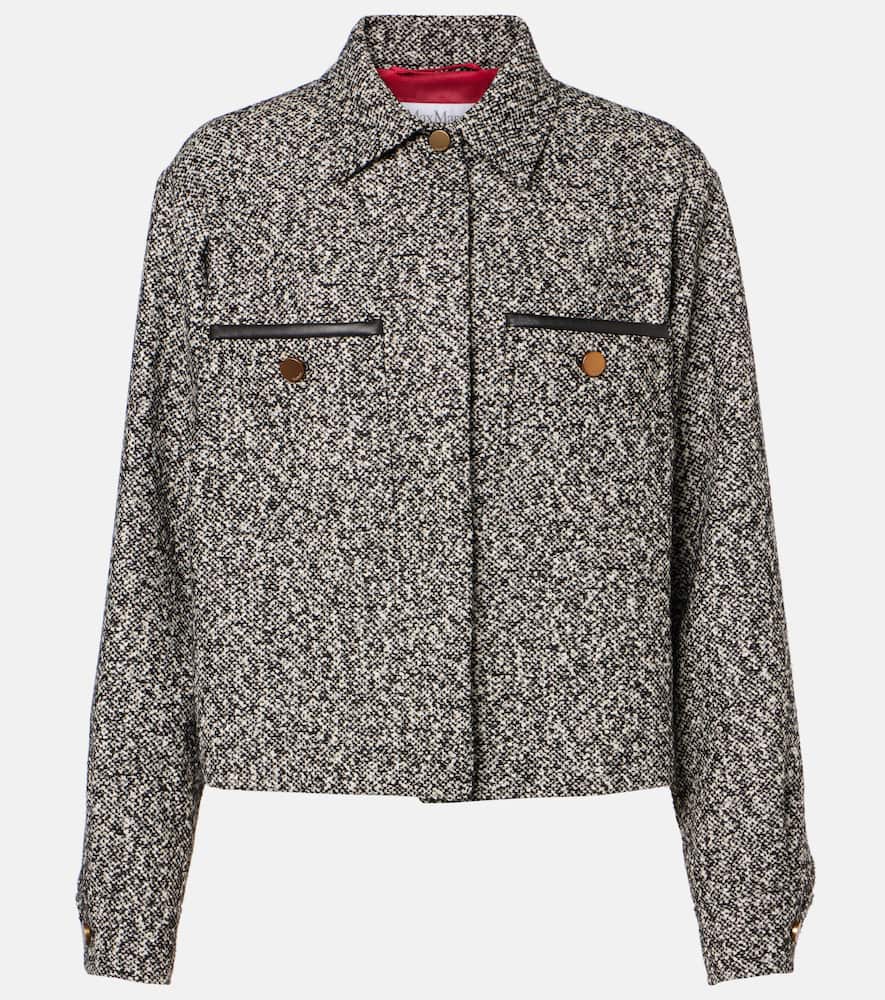 Material: 87% wool, 13% polyamide. Care instructions: dry clean. Made in Italy. Designer color name: Nero/Bianco. Lining: 65% acetate, 35% polyester. Closure: buttoned front. Pockets: patch pockets, buttoned pockets. Shop the latest Max Mara Tweed Jackets.