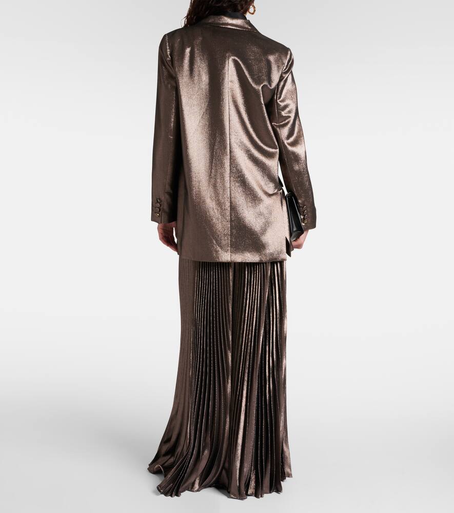 Material: 61% silk, 39% metallic fibres. Care instructions: dry clean. Made in Italy. Designer color name: Bronzo. Lining: 85% polyamide, 10% silk, 5% elastane. Closure: double-breasted (four buttons). Pockets: flap pockets, angled chest pocket. Vent: double. Shop the latest womens Max Mara Blazers.
