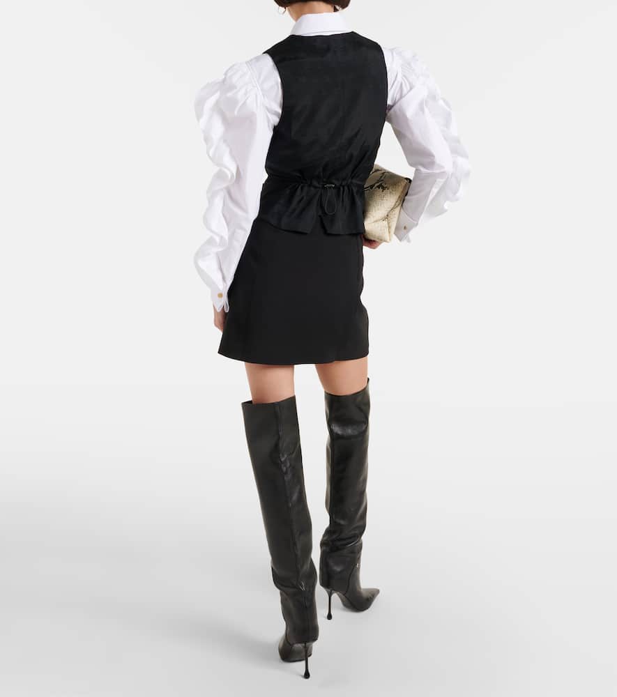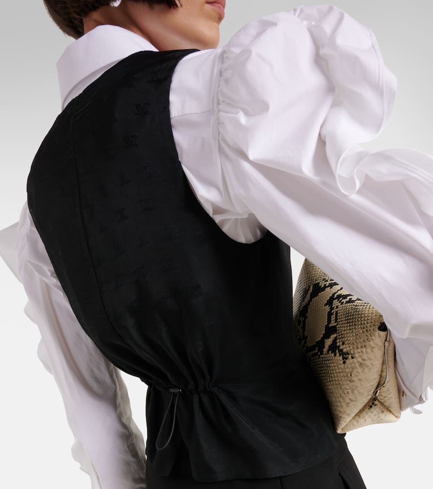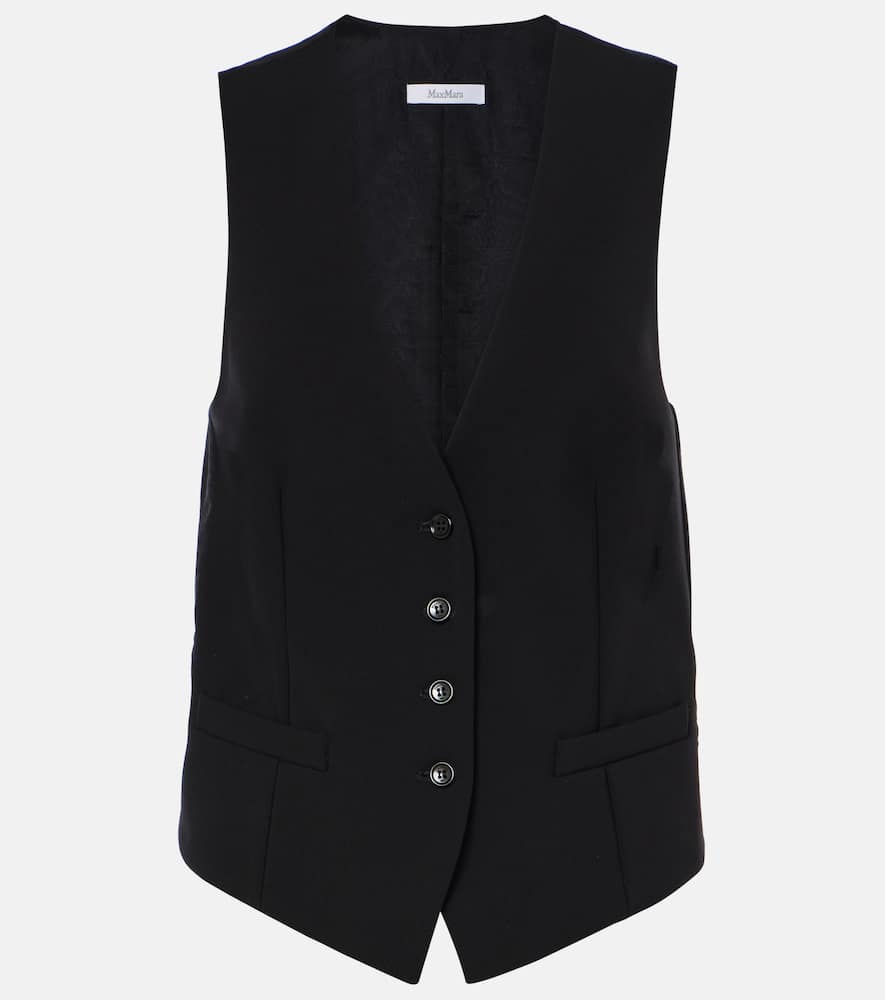 Material: 78% viscose, 16% polyamide, 6% elastane. Care instructions: do not wash. Made in Romania. Designer color name: Nero. Pockets: patch pockets. Closure: buttoned front. Material II: 65% acetate, 35% polyester. Material III: 100% polyester. Contains non-textile parts of animal origin. Shop the latest Max Mara Vests & Gilets.