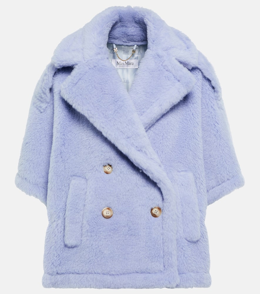 Material: 12% silk, 62% alpaca wool, 26% wool. Made in Italy. Pockets: side slit pockets. Designer color name: Azzurro. Care instructions: specialist clean. Lining: 100% viscose. Shop the latest Max Mara Shearling Jackets.