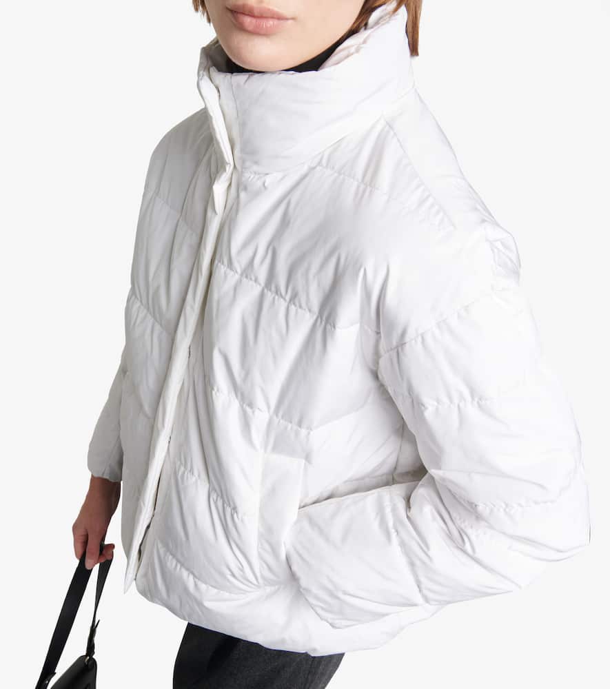 Filling: 90% down, 10% goose feathers. Care instructions: machine wash at 30 degrees. Closure: snap-buttoned front. Designer color name: White. Material: 100% polyester. Material II: 100% polyester. Contains non-textile parts of animal origin. Pockets: side slit pockets, internal pockets. Made in Romania. Shop the latest Max Mara Puffer & Down Jackets.