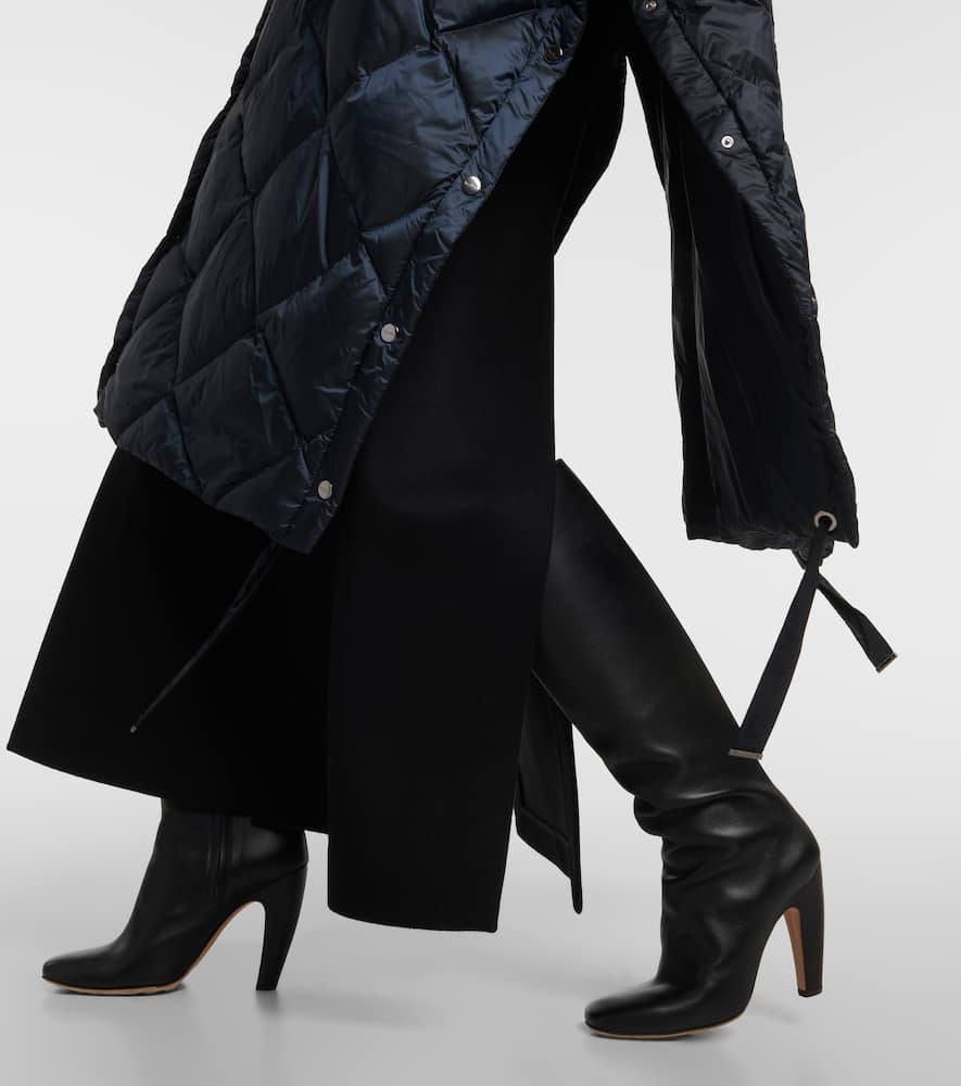 Material: 100% polyamide. Care instructions: machine wash at 30 degrees. Made in Armenia. Designer color name: New Dark. Lining: 100% polyamide. Filling: 90% down, 10% feathers. Contains non-textile parts of animal origin. Closure: snap-buttoned front. Pockets: welt pockets. Hood. Shop the latest Max Mara Capes & Ponchos.