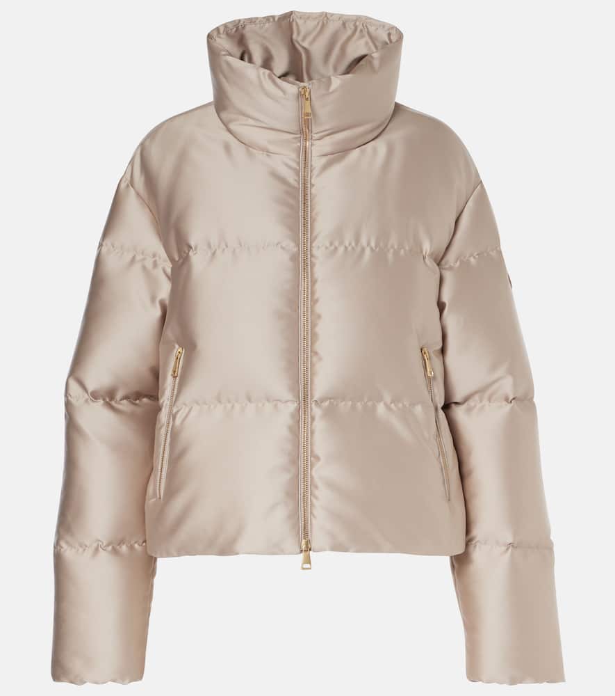 Material: 100% polyester. Care instructions: do not wash. Made in Romania. Designer color name: Beige. Lining: 100% polyamide. Filling: 90% down, 10% feathers. Contains non-textile parts of animal origin. Closure: two-way zipped front. Pockets: zipped pockets. Shop the latest Moncler Puffer & Down Jackets.