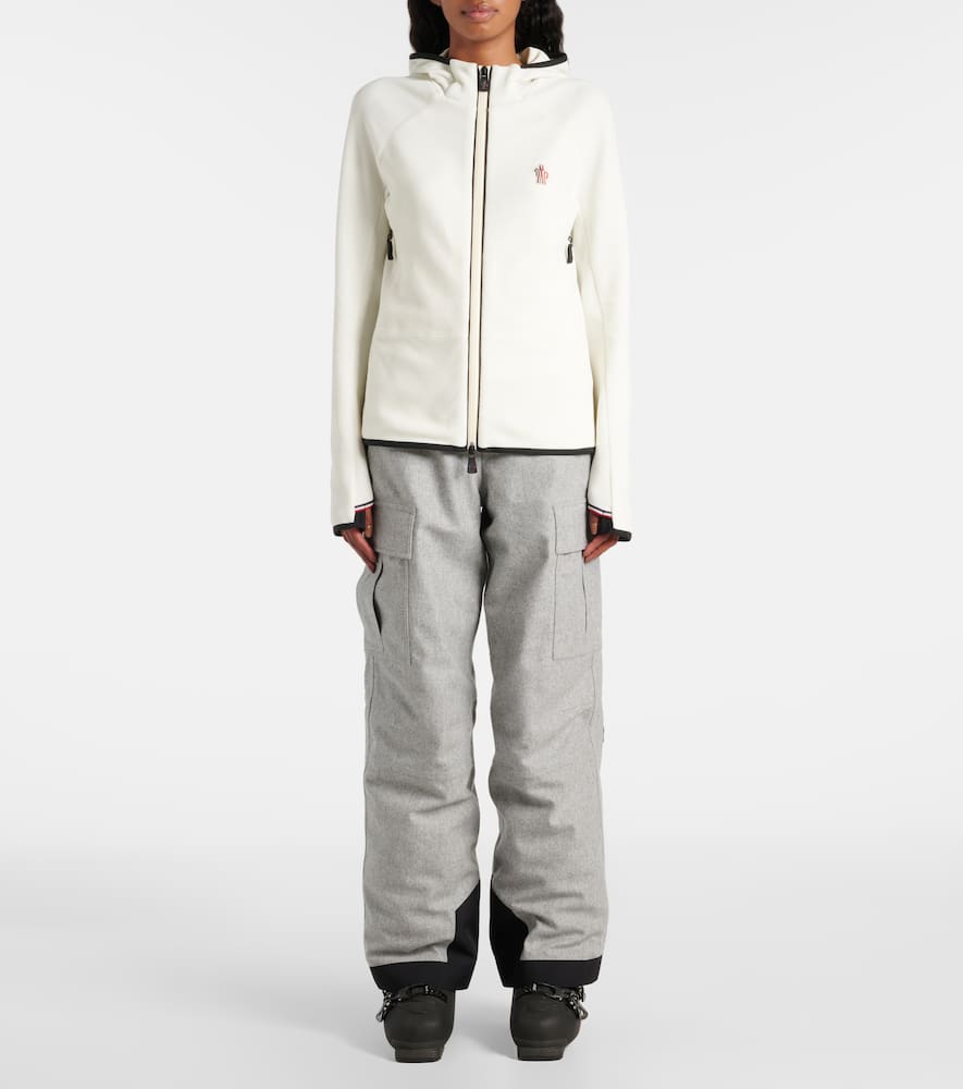 Material: 93% polyester, 7% elastane. Care instructions: machine wash at 30 degrees. Made in Portugal. Designer color name: 034. Closure: two-way zipped front. Pockets: zipped pockets. Material II: 75% polyamide, 25% elastane. Lining: 85% polyester, 15% elastane. Fully lined. Hood. Shop the latest Moncler Grenoble Ski Jackets.