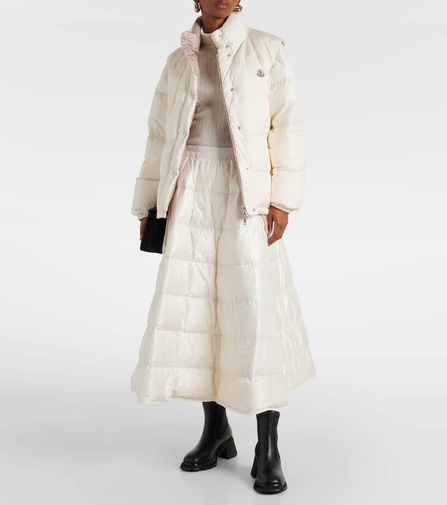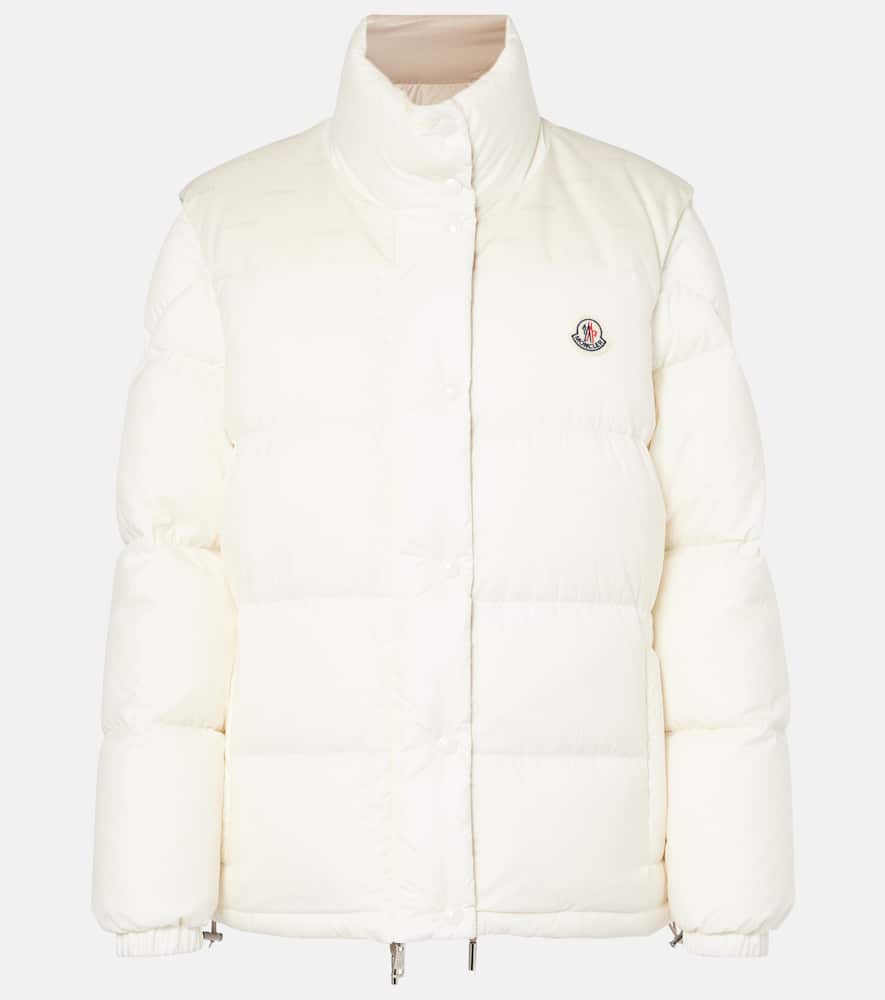 Material: 100% polyamide. Care instructions: hand wash. Made in Romania. Designer color name: Silk White. Lining: 100% polyester. Filling: 90% down, 10% feathers. Closure: two-way zipped front with snap-button fastenings. Contains non-textile parts of animal origin. Reversible. Detachable sleeves. Shop the latest Moncler Puffer & Down Jackets.