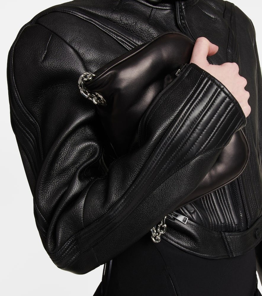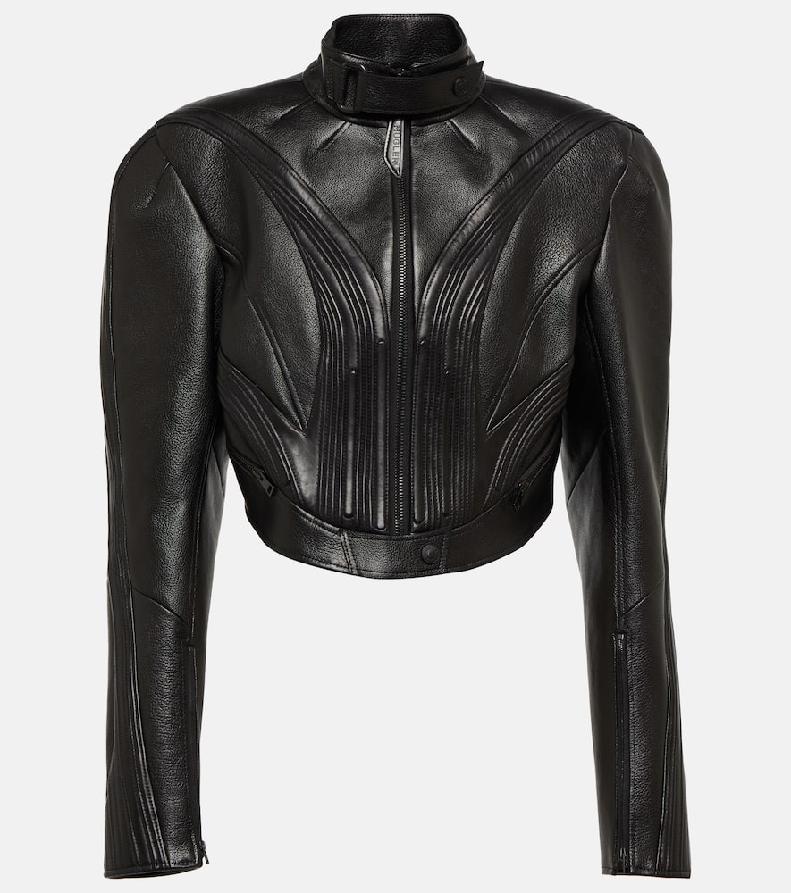 Lining: fully lined, 100% cupro. Made in Poland. Care instructions: specialist clean. Designer color name: Black Bimaterial. Closure: zipper, snap-button fastenings. Material: 10% lamb leather, 90% goat leather. Shop the latest Mugler Leather Jackets.