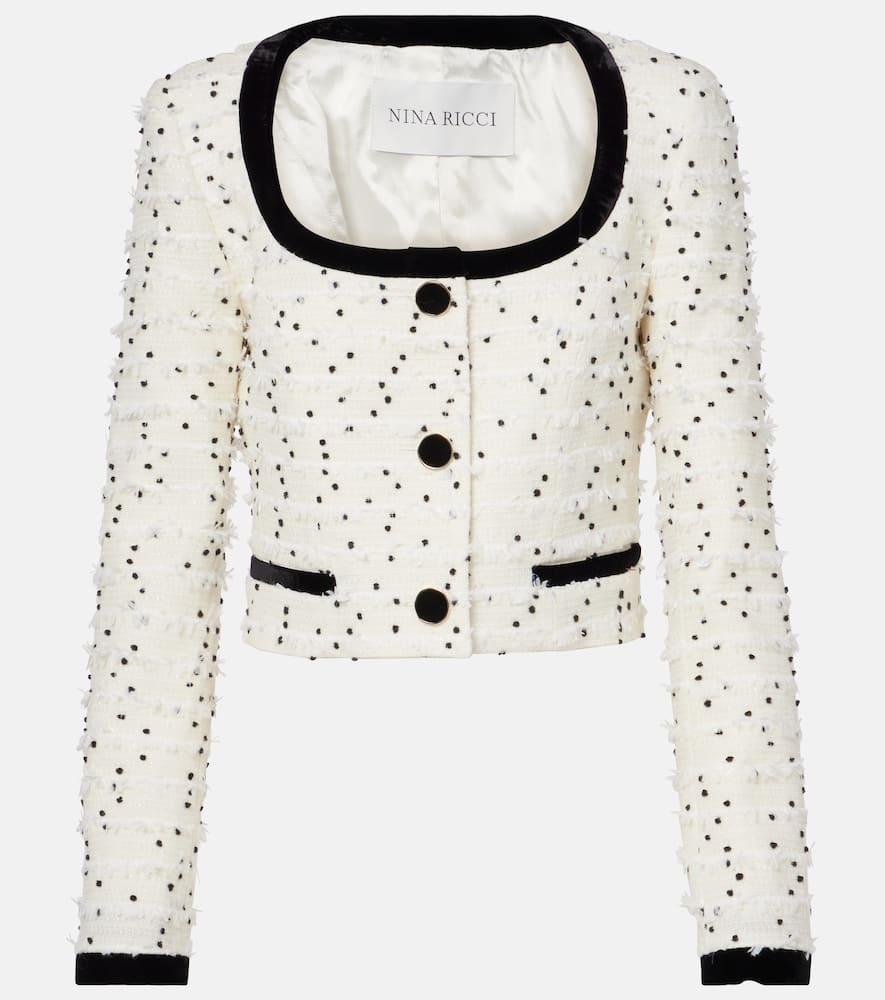 Nina Ricci Polka-dot fringed wool-blend tweed jacket