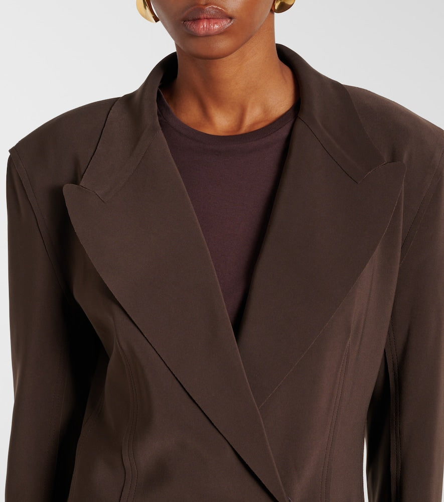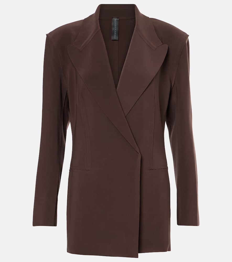 Material: 95% polyester, 5% elastane. Care instructions: machine wash cold. Made in China. Designer color name: Choco. Pockets: welt pockets. Closure: VELCRO® fastening. Shop the latest Norma Kamali Blazers.
