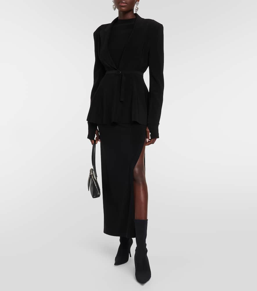 Material: 95% polyester, 5% elastane. Care instructions: dry clean. Made in China. Designer color name: Black. Closure: belted waist. Shop the latest Norma Kamali Blazers.
