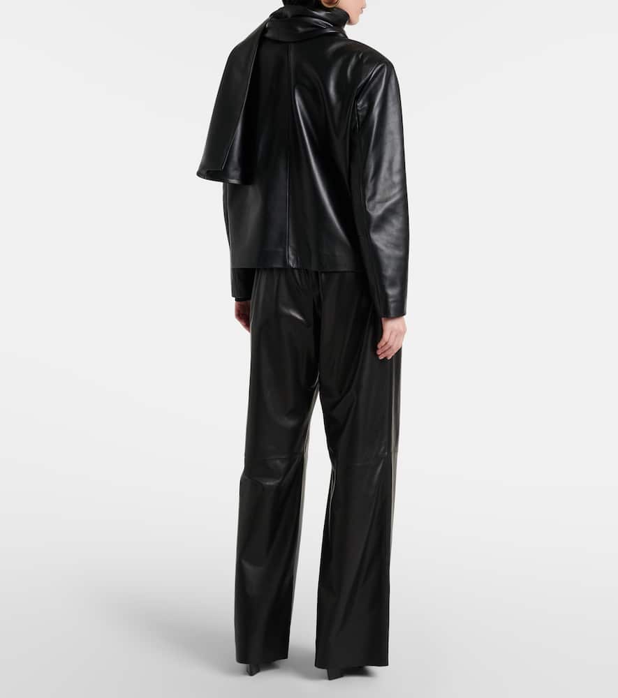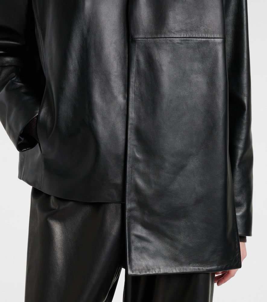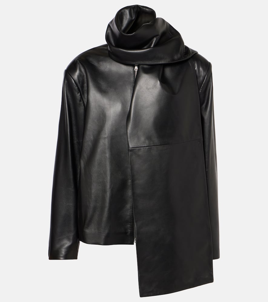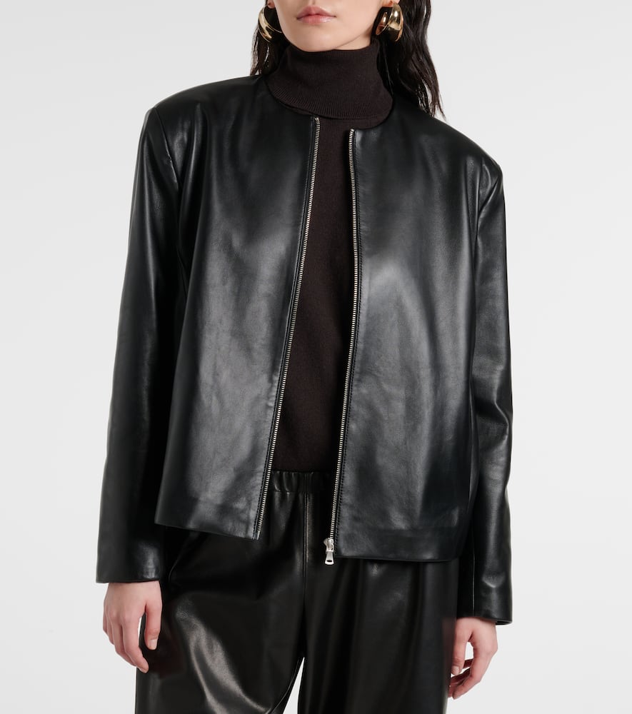 Material: 100% lamb leather. Care instructions: specialist clean. Made in Turkey. Designer color name: Black. Lining: 63% cupro, 37% viscose. Closure: two-way zipped front. Pockets: side slit pockets. Shop the latest Nour Hammour Leather Jackets.