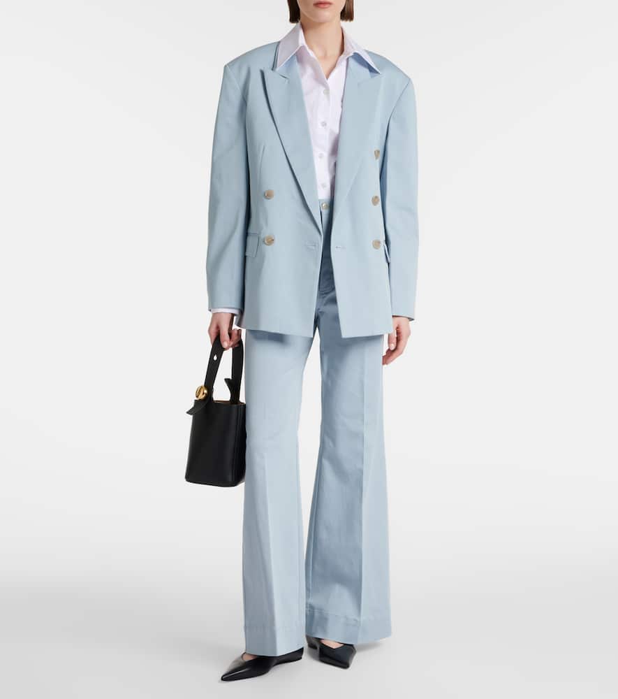 Material: 97% cotton, 3% elastane. Care instructions: dry clean. Made in Italy. Designer color name: Blue. Closure: double-breasted. Pockets: flap pockets. Shop the latest Plan C Blazers.