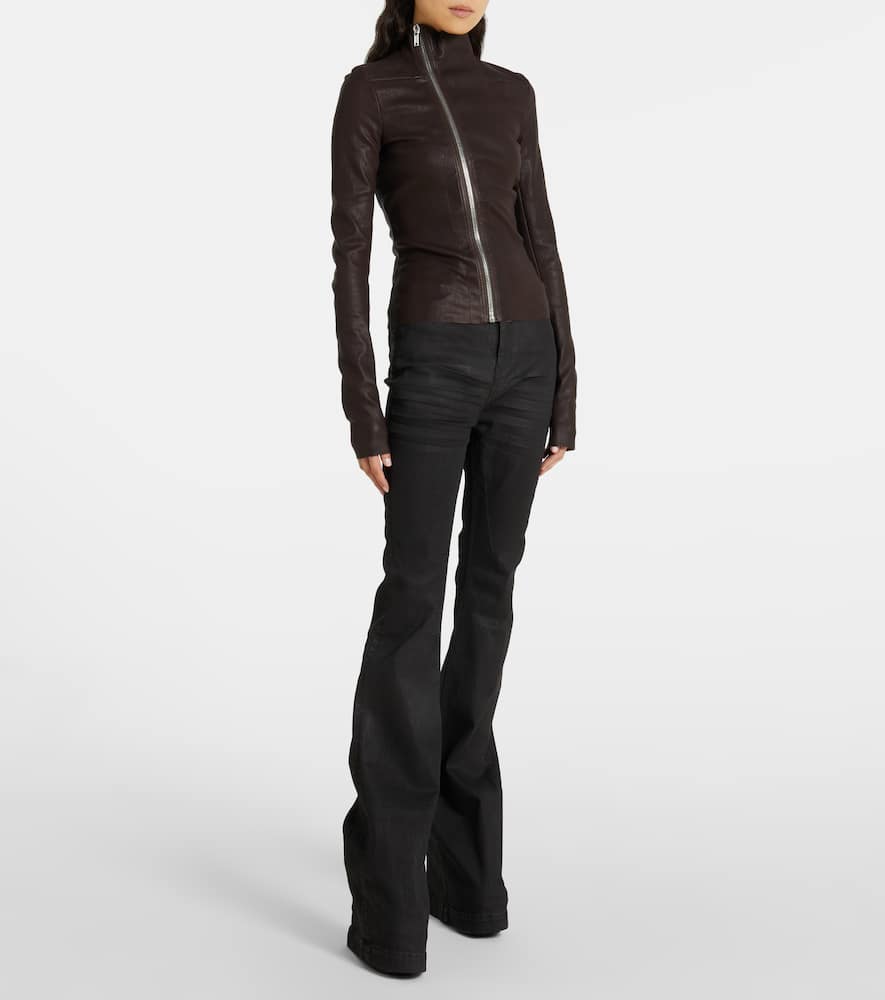 Material: 65% leather, 34% cotton, 1% elastane. Care instructions: specialist clean. Made in Moldova. Designer color name: Mahogany. Closure: zipped front. Shop the latest Rick Owens Leather Jackets.